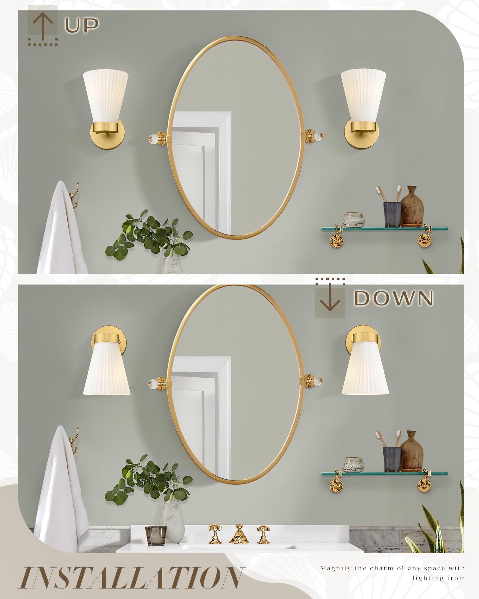 Gold Wall Sconces Set of Two, HWH Modern Bathroom Vanity Sconce Wall Lighting Indoor Wall Lamp with Frosted White Striped Glass, 5HZG97B-2PK BG
