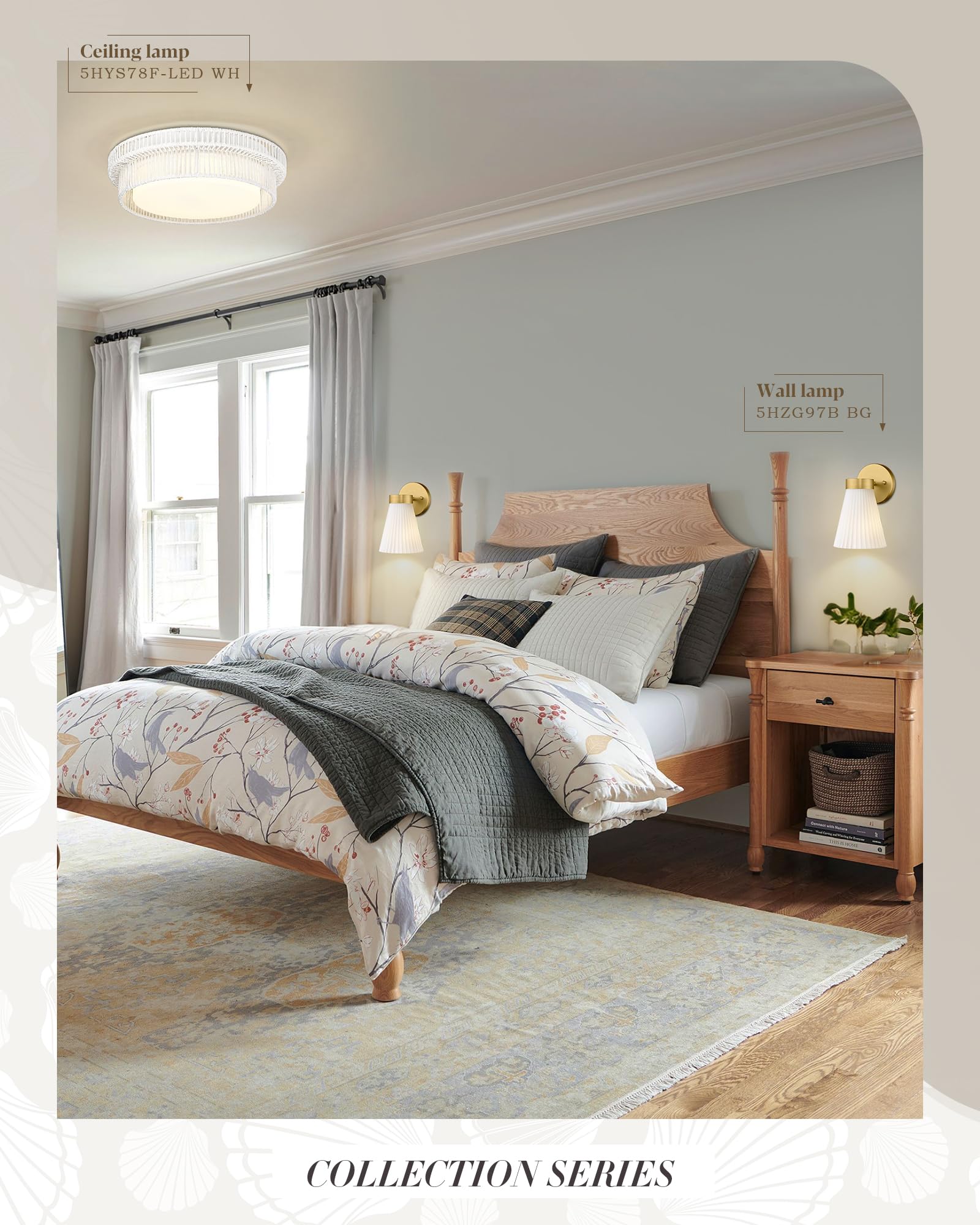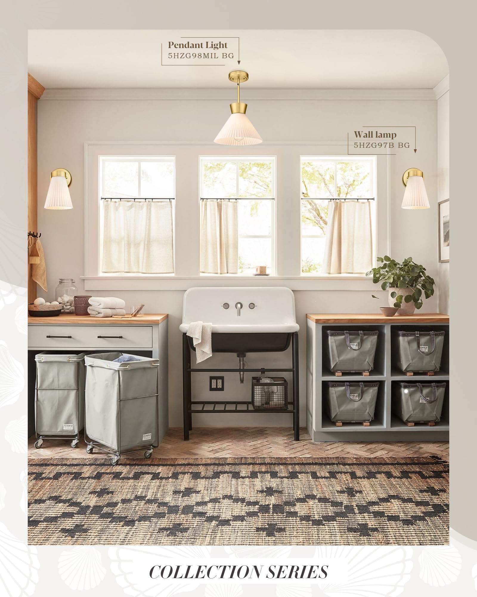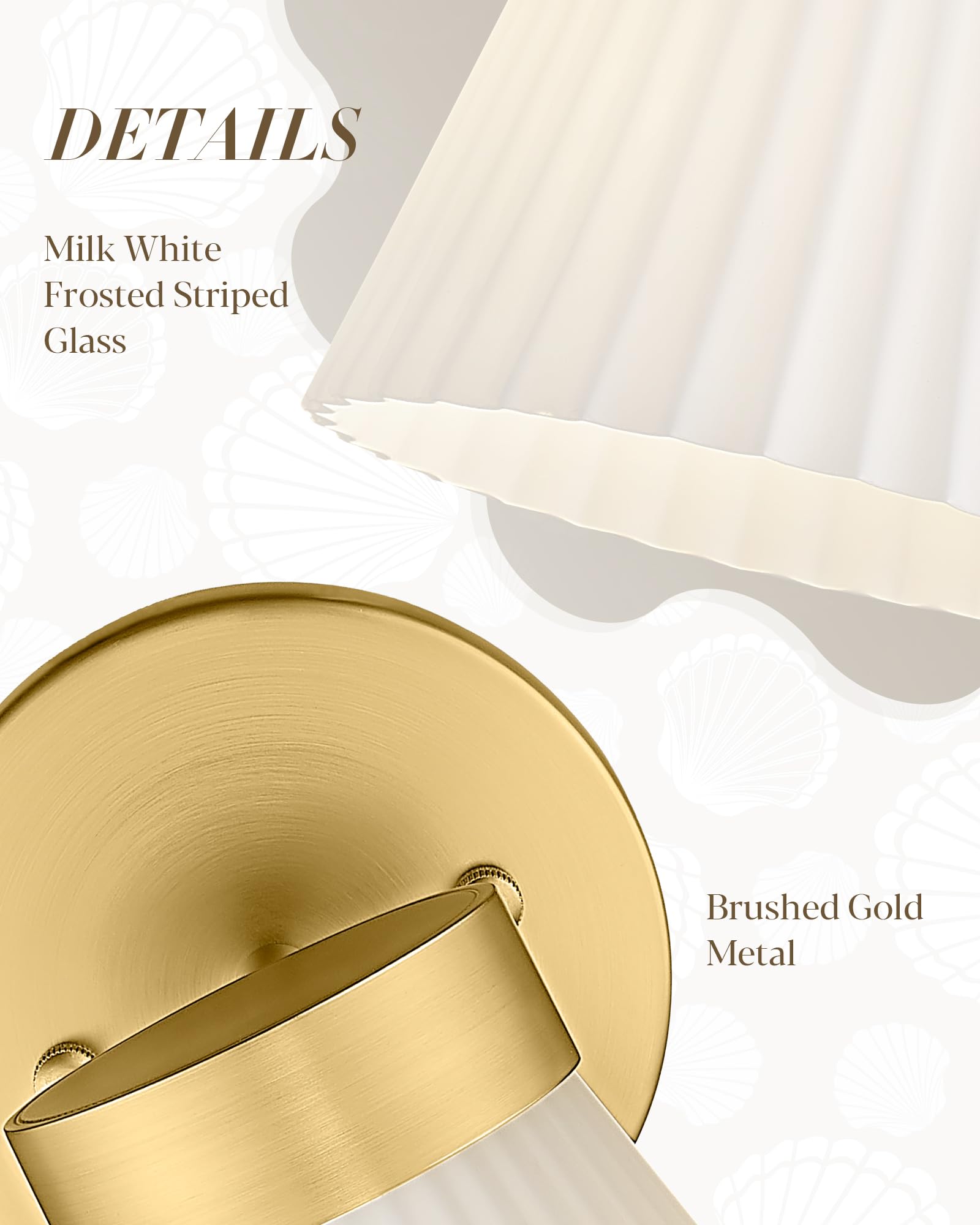 - Modern Design: The design of this wall light fixture is inspired by the white seashell. Brushed gold metal base carrying one frosted milk-white striped glass shade to enhance the beauty of luxury and elegance!