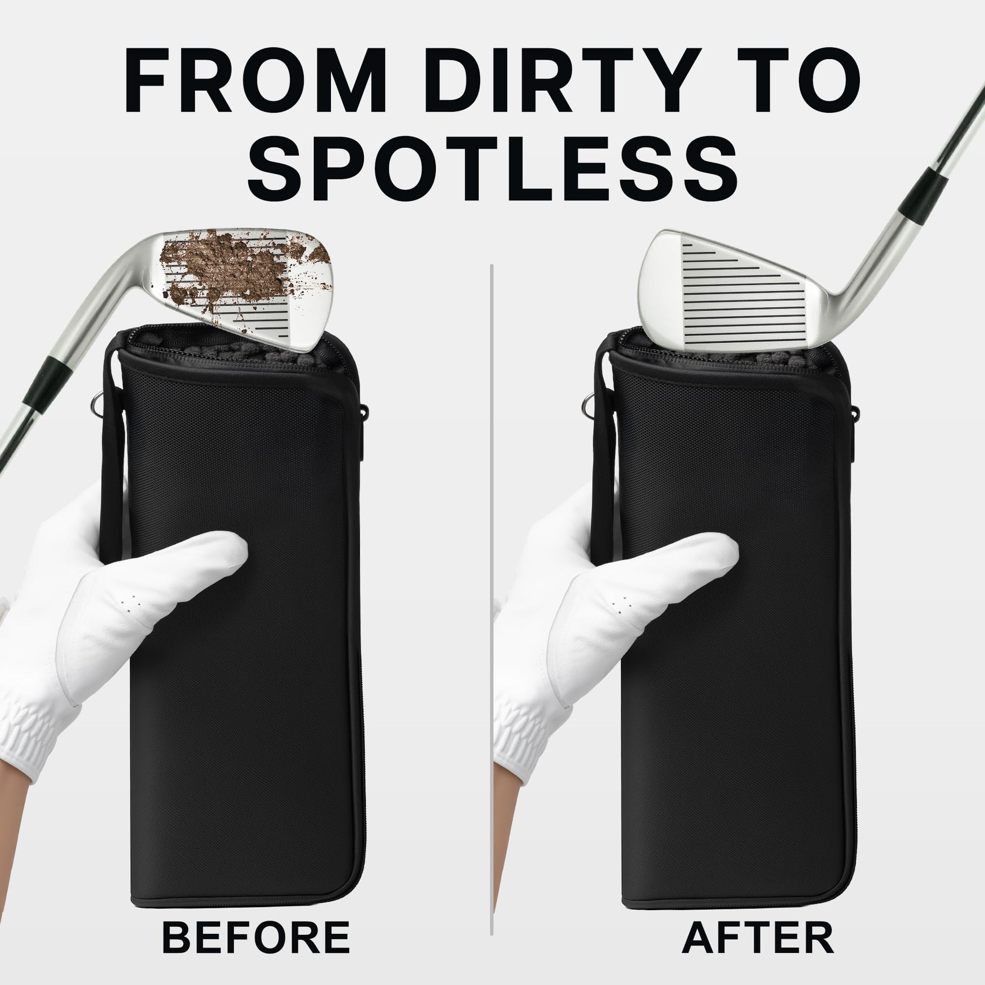 Golf Club and Golf Boll Cleaner Bag, Golf Ball Cleaner Pouch with 1 Pack Golf Ball Towel, Waterproof Outside, Clean Inside – Liner Technology, Machine Washable,Black