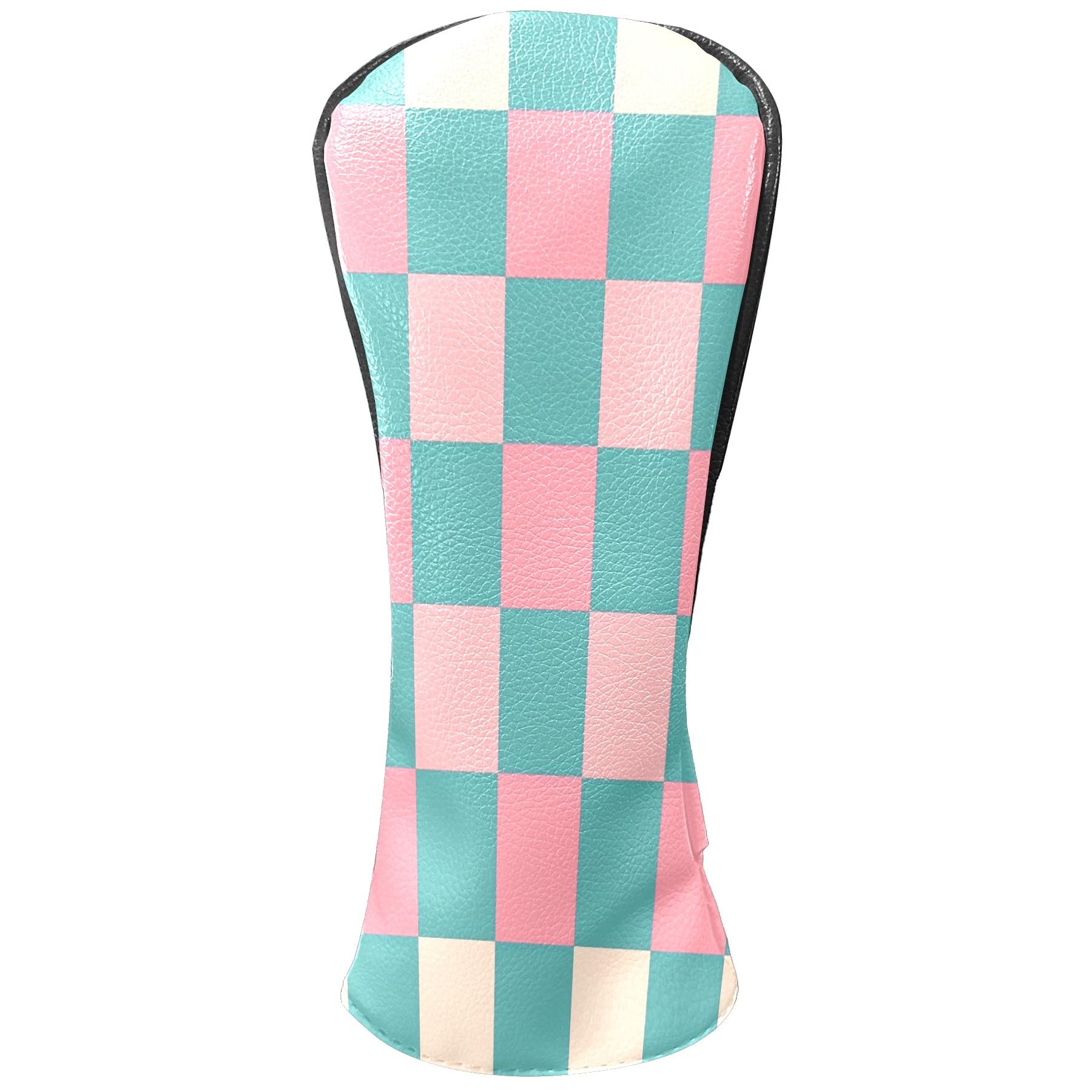 Golf Club Head Covers for Driver and Fairway Woods, Waterproof Leather Headcovers for Golf Clubs, Ideal Golf Accessories Gift for Men Women (Pink and Teal Checkered)