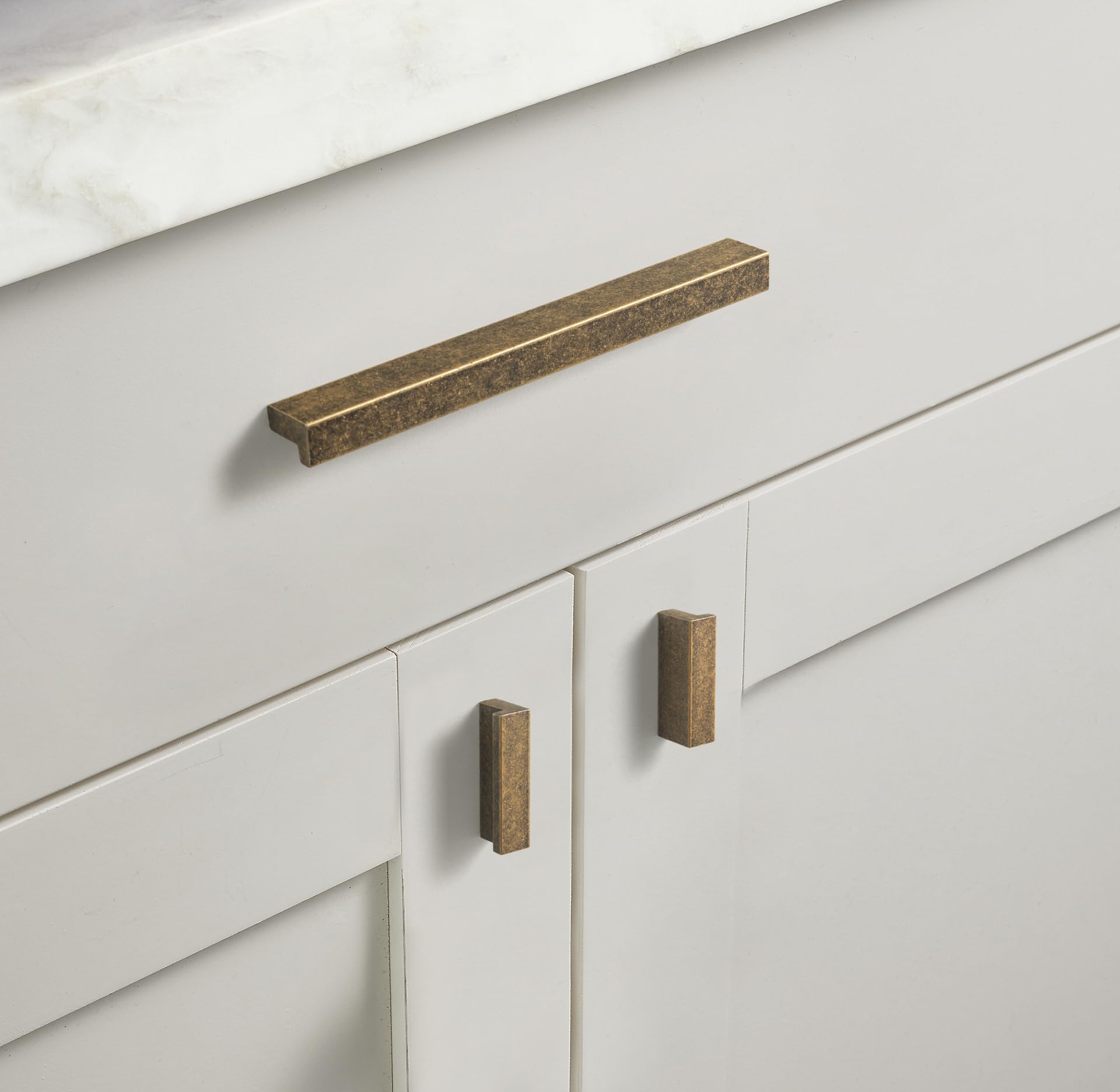 Goo-Ki Cabinet Handles 12 PCS - Antique Brass Drawer Pulls 7-1/2 in (192mm) Hole Centers - Tilted Solid Drawer Handles for Kitchen Cabinet Pulls - Finger Pull 4402-GT-192