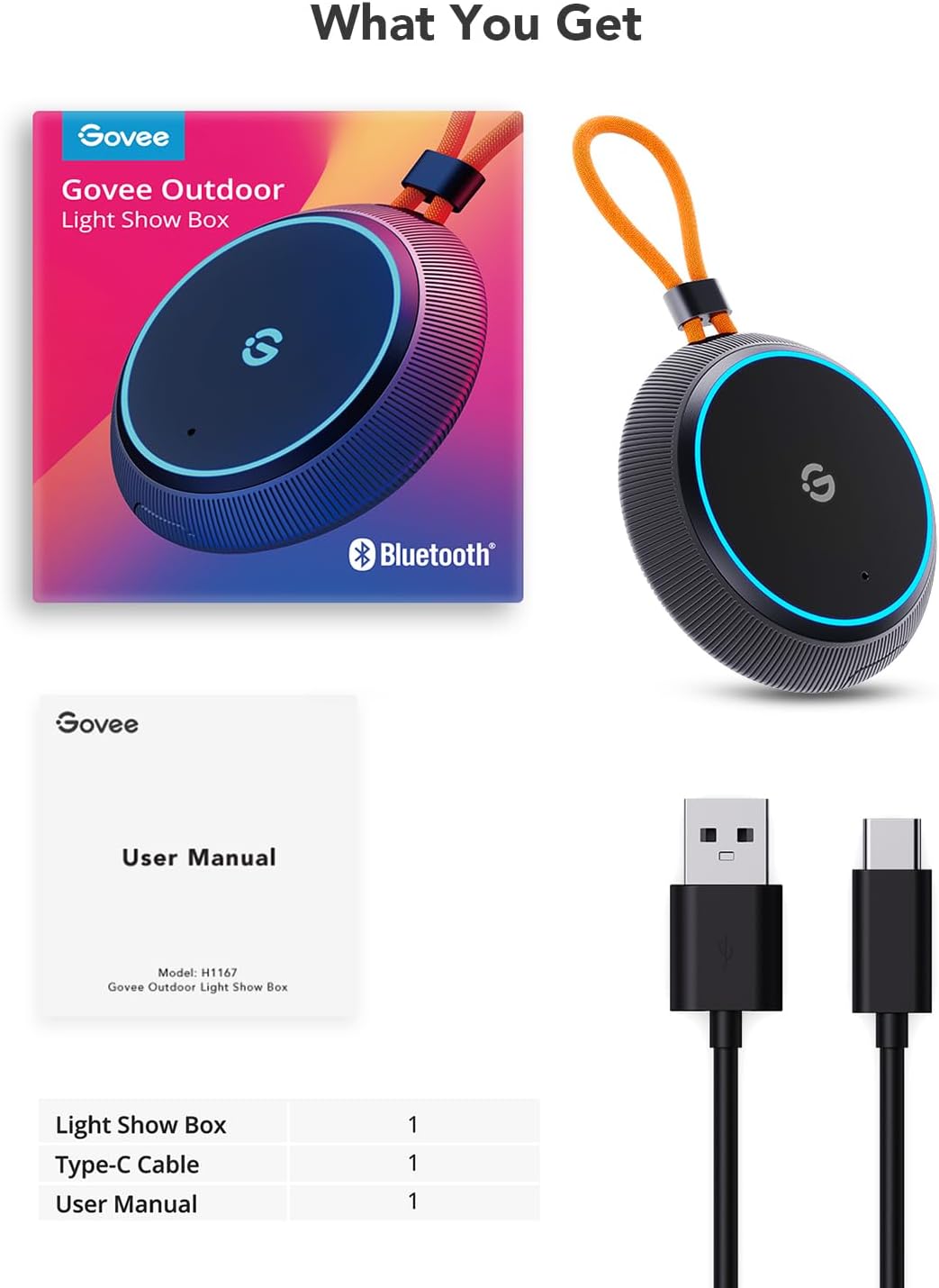 Govee Outdoor Light Show Box - Bluetooth Music & Scene Modes, IP65 Waterproof, Battery Powered