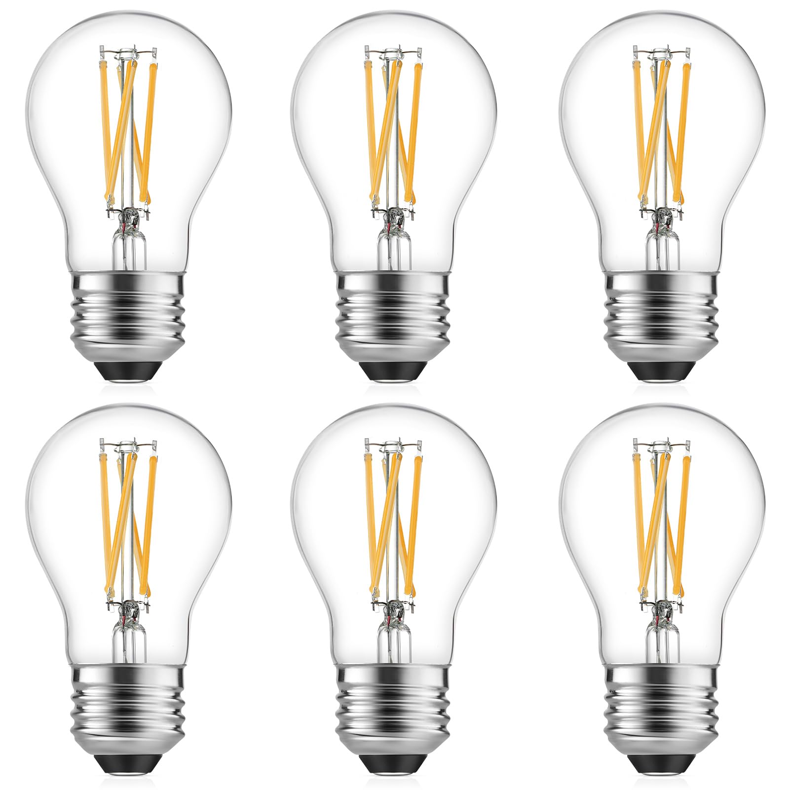 Gozelux A15 LED Bulbs - Vintage Edison Bulbs, Dimmable, Clear Glass, E26 Medium Base, 6W (60W Equivalent), 2700K Warm White, 700LM, for Ceiling Fans, Appliances, Refrigerator Lights - 6 Pack