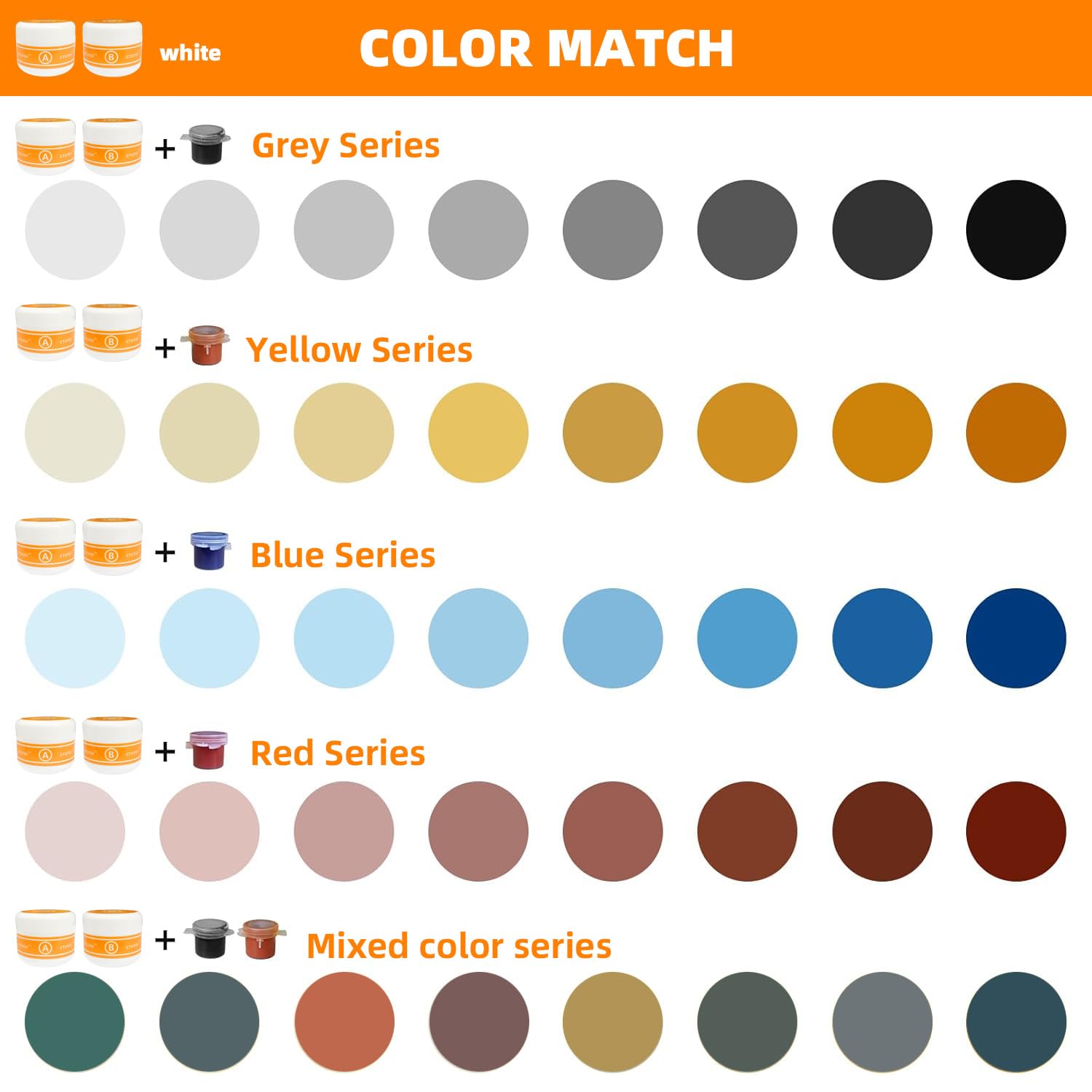 - What will you get? A/B glue, 4 * color pastes (can create many colors), scraper, Wood Stick, gloves, sandpaper,Toothpick. If you have any problem.60 DAYS FULL MONEY BACK GUARANTEE - If you are not satisfied with our product, you can request it within 60 days . If the repair result fails to satisfy you, please send us a picture and we'll collaborate with you to find a solution