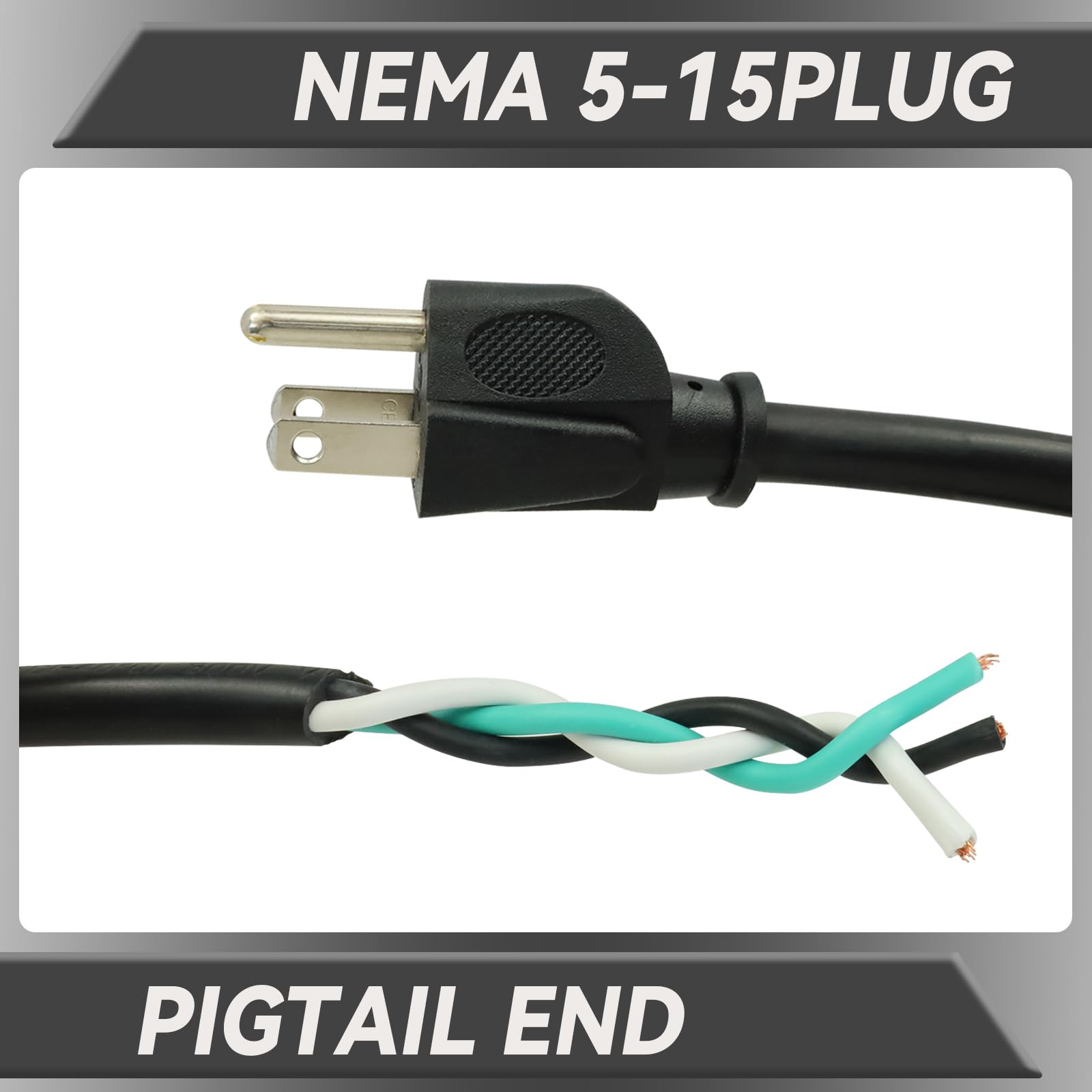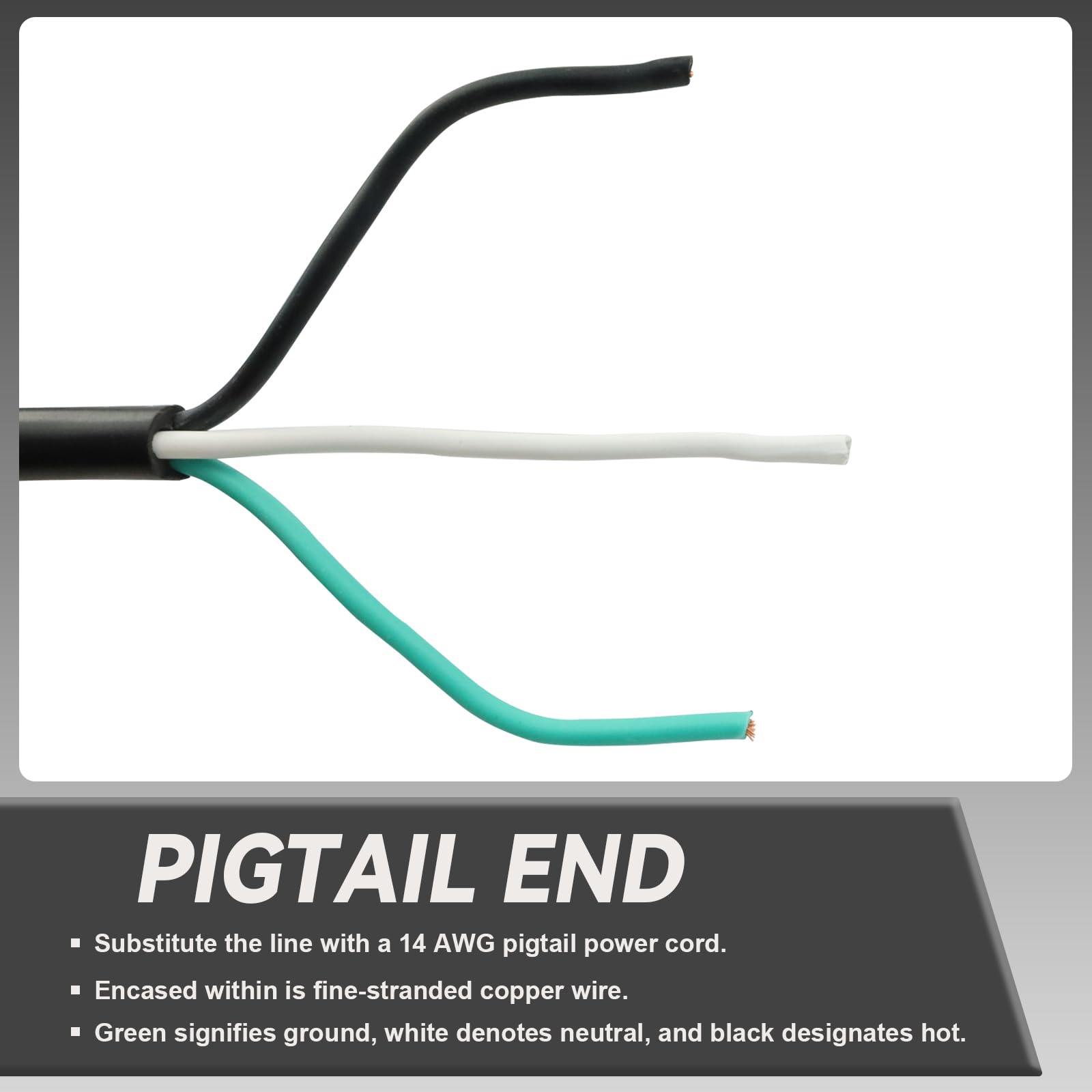 - APPLICATION: 3 Foot 14/3 cord with U Ground NEMA 5-15 plug and pigtail end