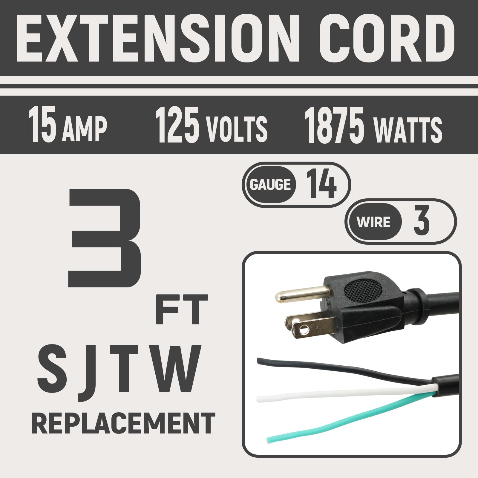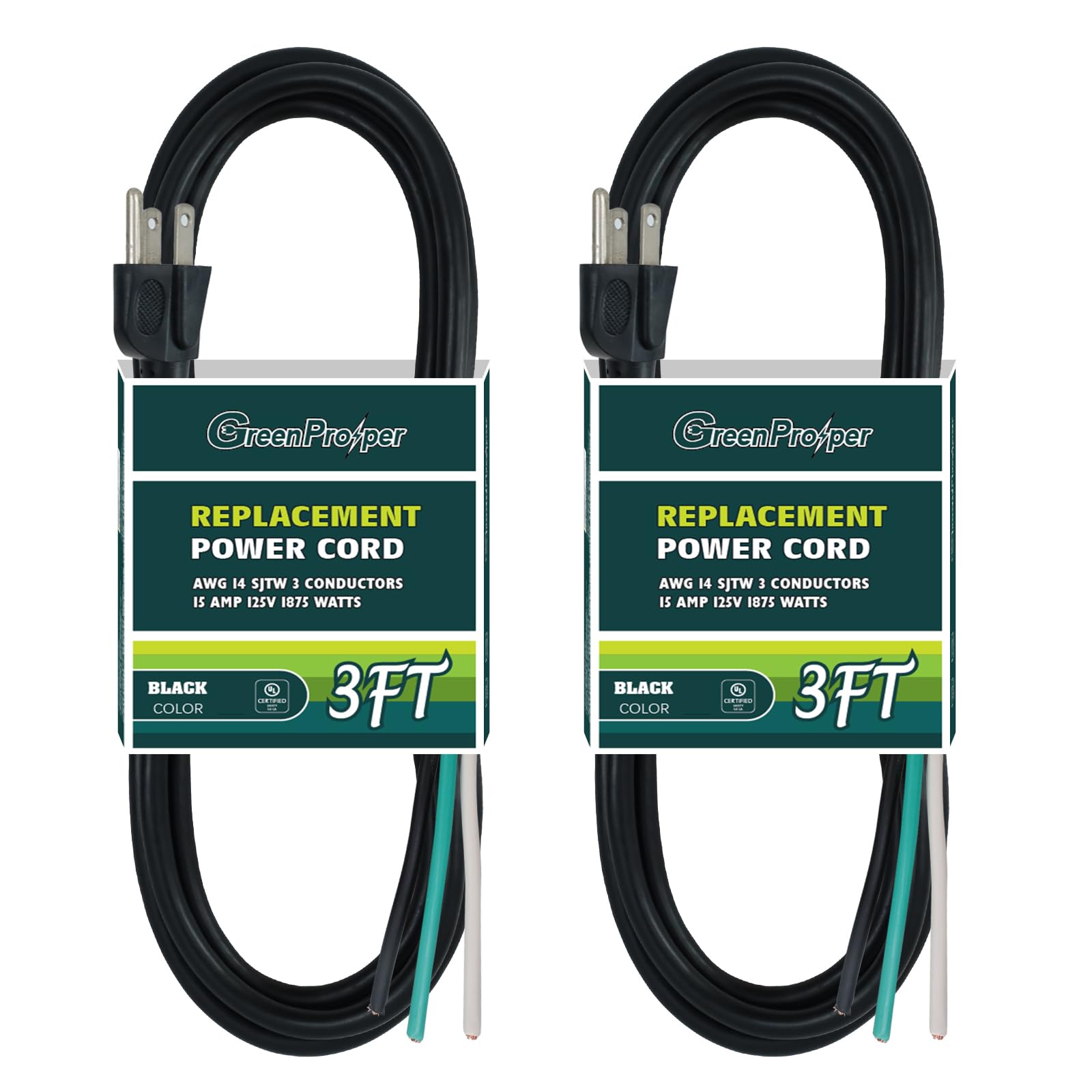 GreenProsper Industries Inc 3-Wire Appliance and Power Tool Cord, 3 ft, 14 AWG, 15A/125V AC, 1875w, Black, 2pack