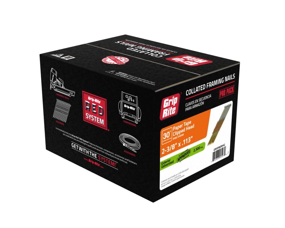 Grip-Rite GRSP8DRHG Clipped Head 2-3/8-inch by .113-inch by 30 Degree Paper Collated Ring Shank Hot-Dip Galvanized Framing Nail, 2,500 per Box