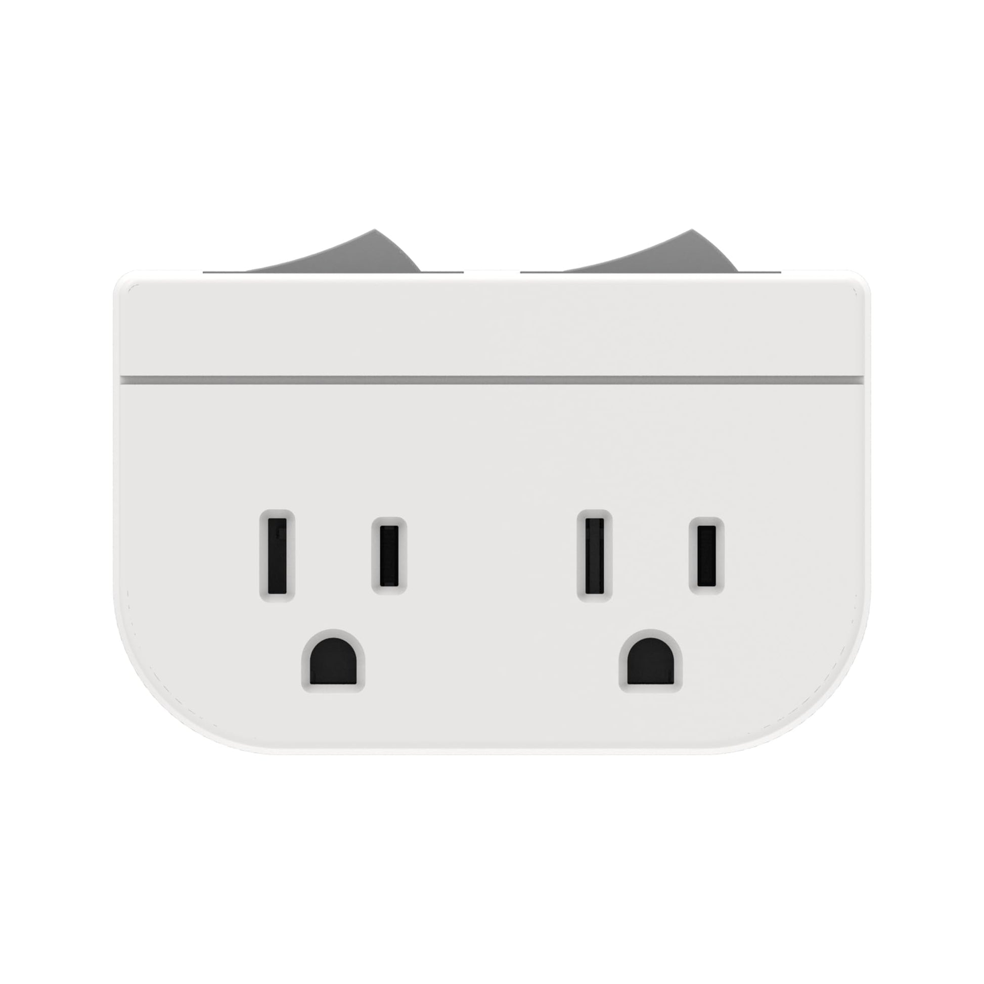 Grounded Double Outlet Power Adapter with Separate On/Off Rocker Switches, 3 Prong Electrical Plug Outlet Switch Current Tap