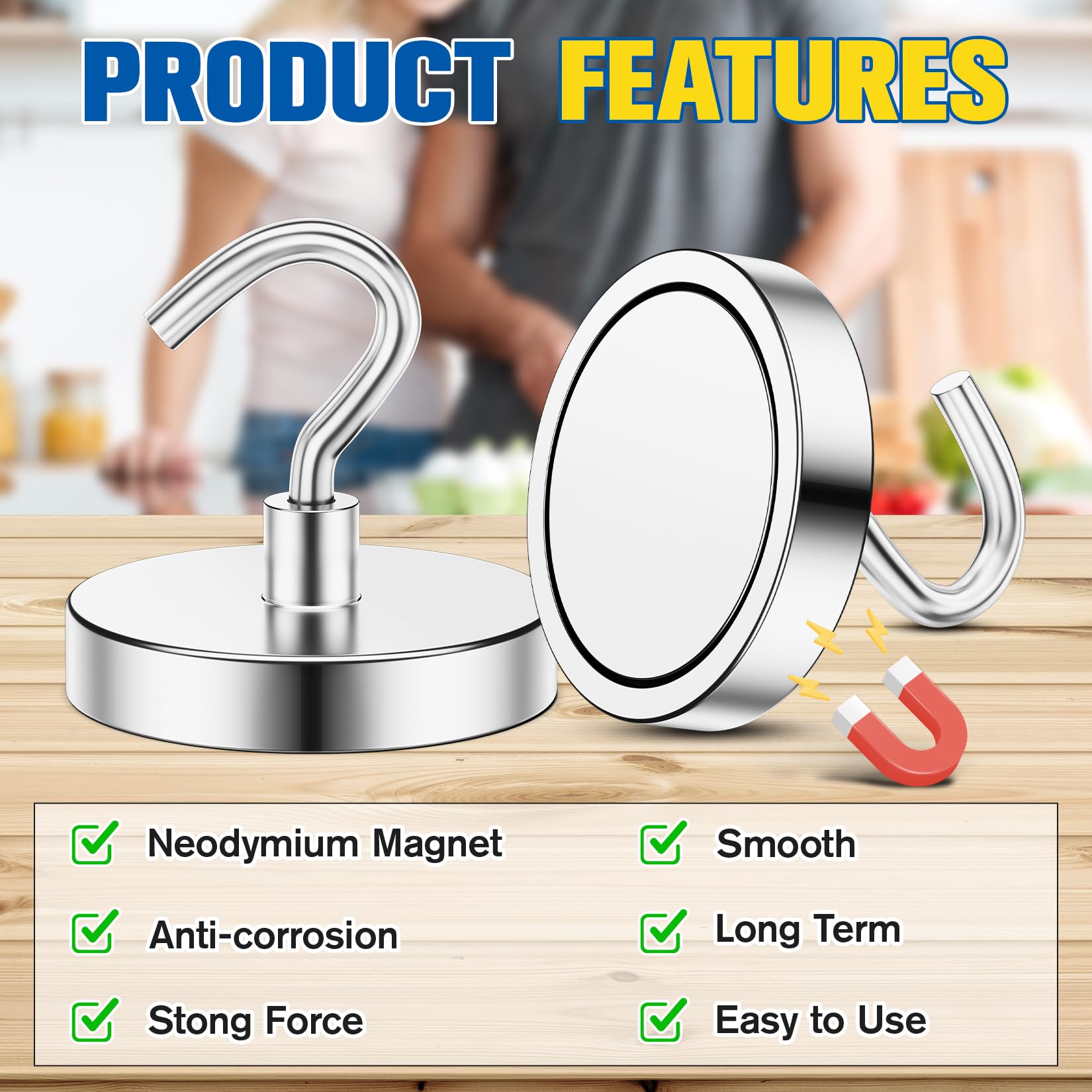- Premium-Quality: These metal magnetic hooks feature a CNC-machined steel base for a compact and durable design. The magnet hooks' surface is treated with a triple-layer protective coating of nickel, copper, and nickel (Ni-Cu-Ni), offering superior rust and corrosion resistance. magnetic hook suitable for both indoor and outdoor use, making it ideal for extended use.