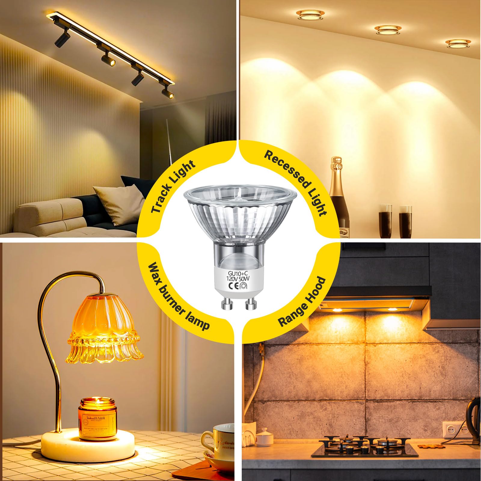 - 【Wide Applications】: MR16 GU10 halogen light bulbs are perfect replacement for track light bulbs, range hood light bulbs, accent light bulbs, recessed light bulbs and more.