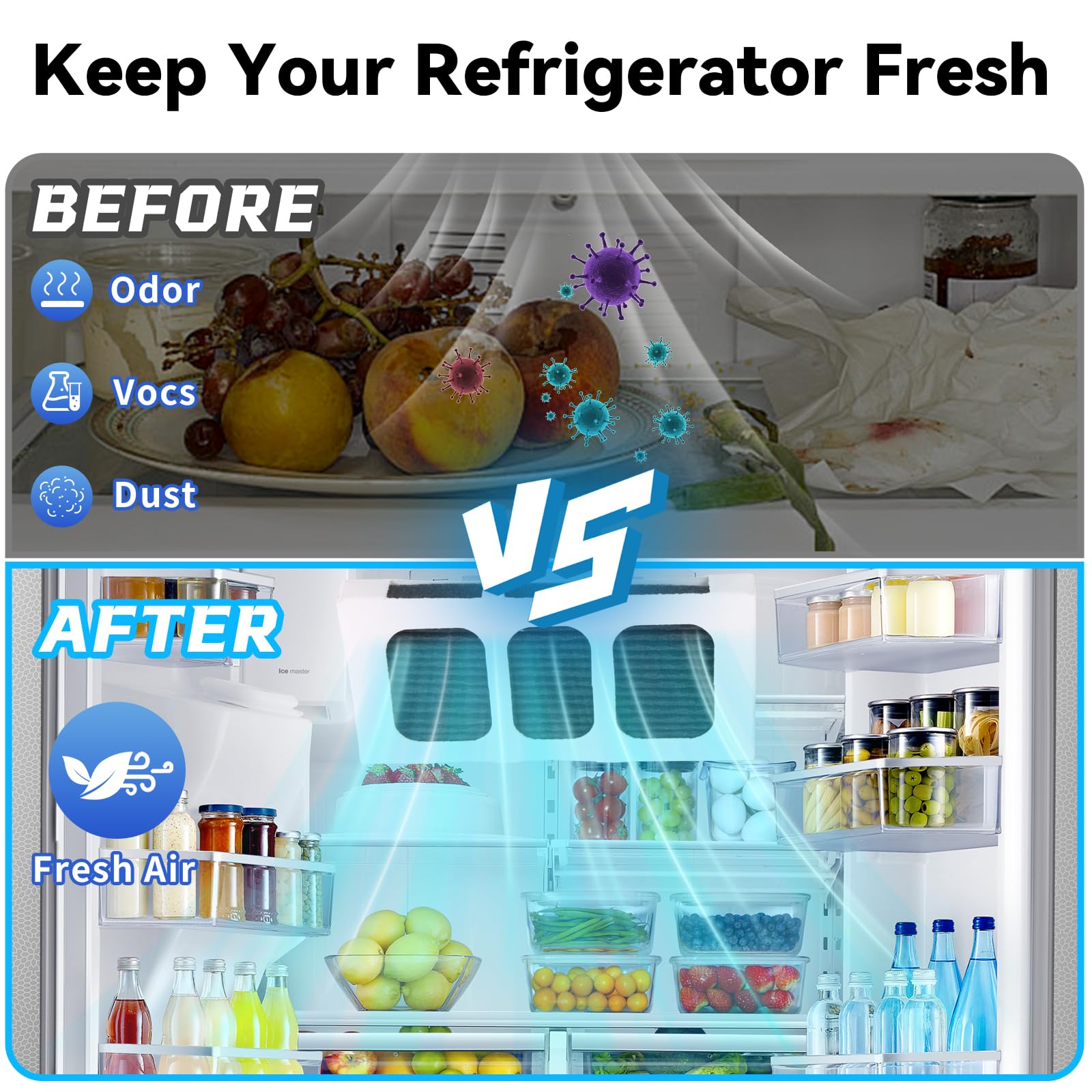- Powerful Odor Elimination: Each Guarm air filter uses high-grade coconut shell activated carbon to effectively absorb odors from spoiled food, seafood, milk and more, keeping your fridge fresher, longer