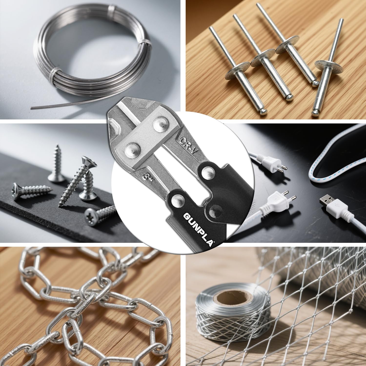 - - AFFORDABLE & VERSATILE: Gunpla bolt snips clippers feature a universal short cutting edge to fit most job needs. This 8 inch mini bolt cutters are perfect for cutting screws, nails and wire, chains at office, garden, garage, workshop or more. Lightweight, compact and sturdy, the cutting action is easy when working on metals