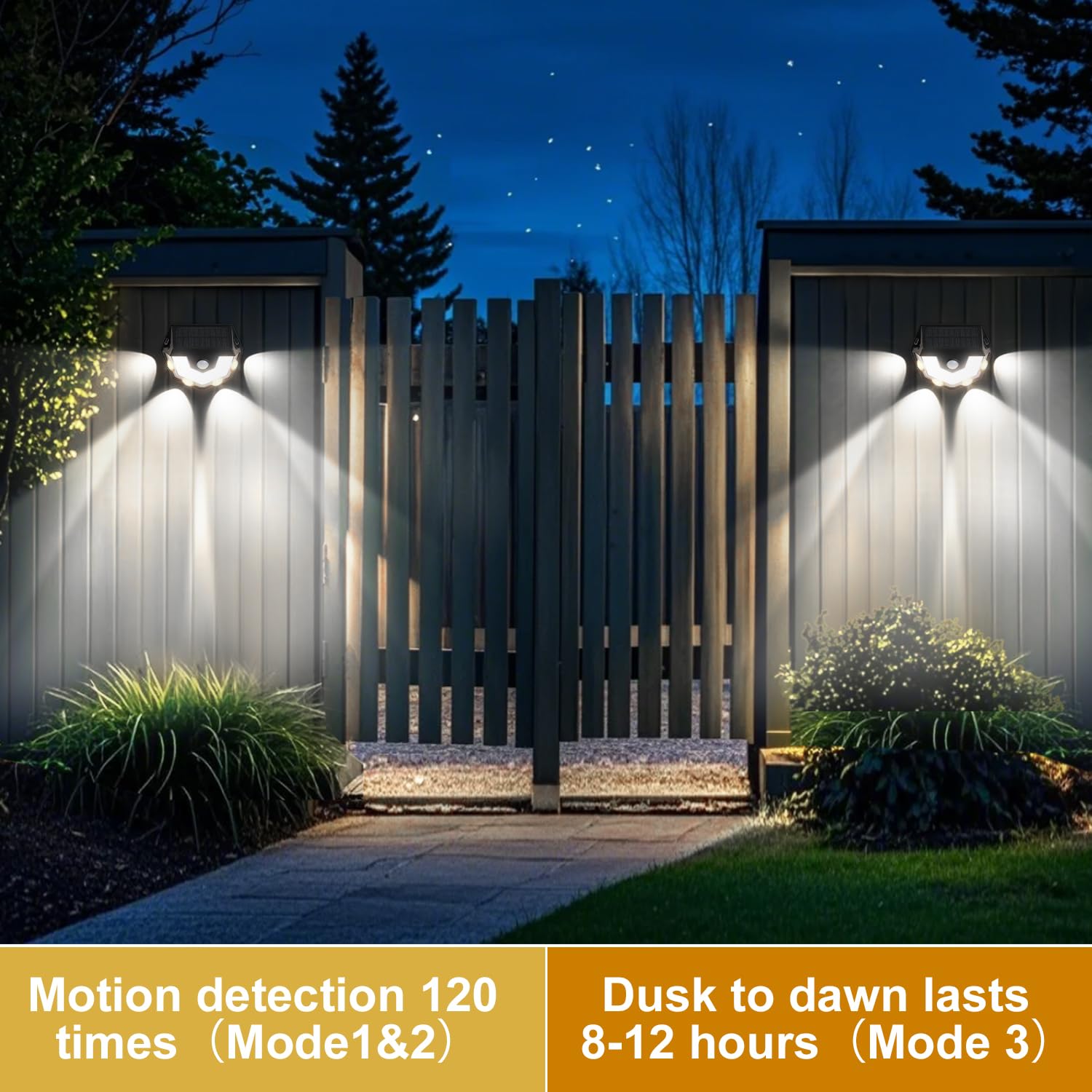 HAARAY 2 Pack Solar Fence Lights, 270° Wide-Angle Illumination Motion Sensor Outdoor Lights, Dusk to Dawn, 3 Settings, Security Light for Yard, Garden, Step