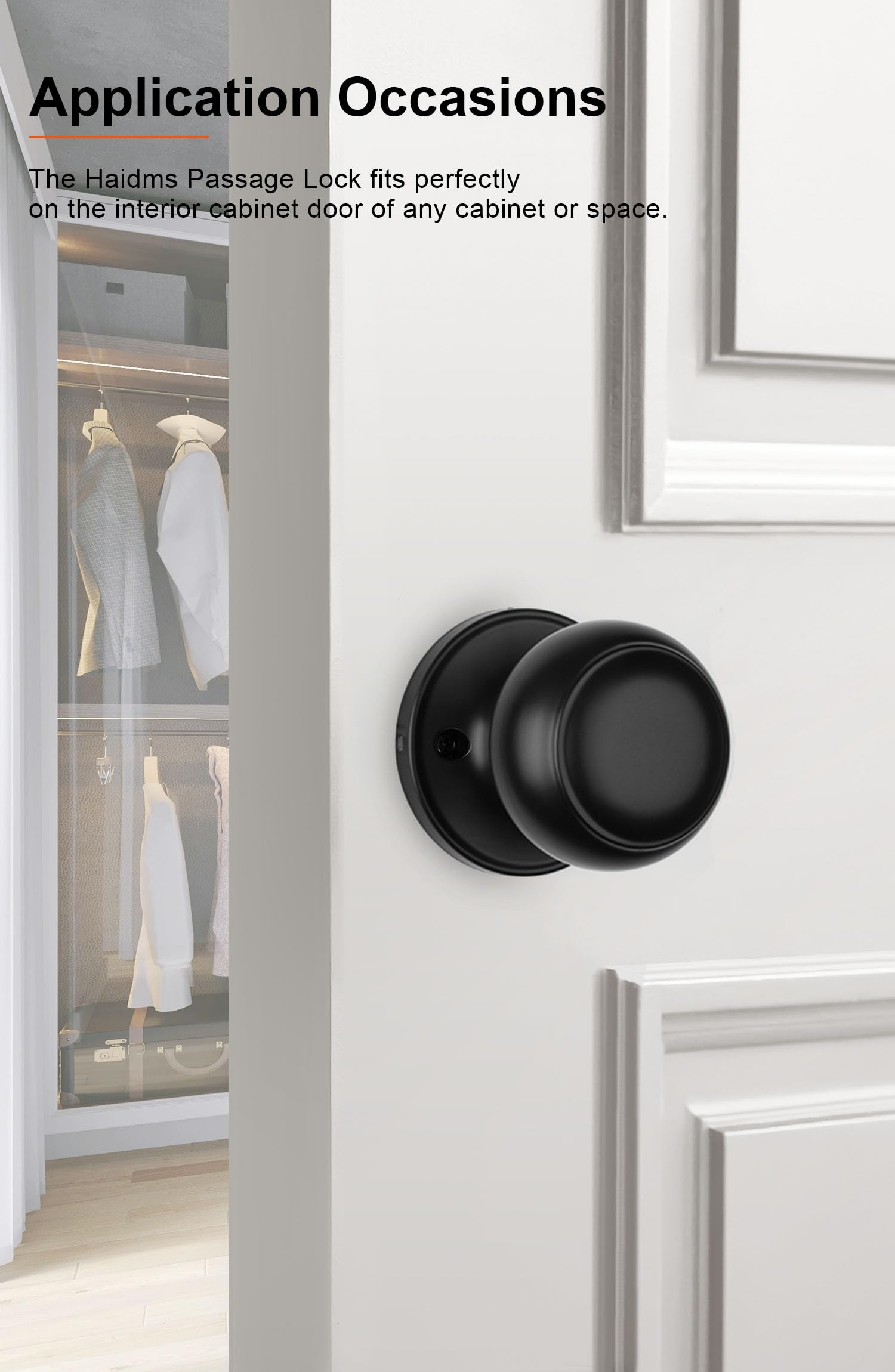 Haidms 1 Pack Black Dummy Door Knob, Half Matte Black No-Turning Dummy Closet Doors Single-Sided Door Locks (2 Pieces/1 Pair)