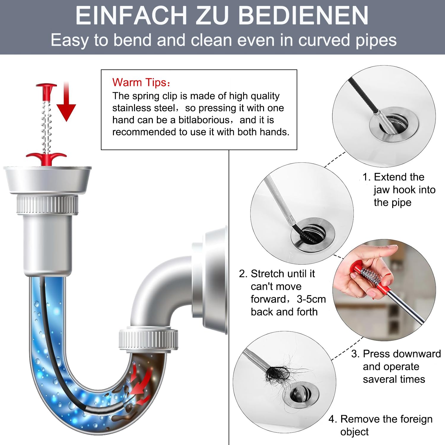 - Easy to Use: Both drain cleaners feature flexibility and bendability, allowing them to easily navigate curves within drain pipes. The easy-grip loop handle ensures effortless insertion and retraction.