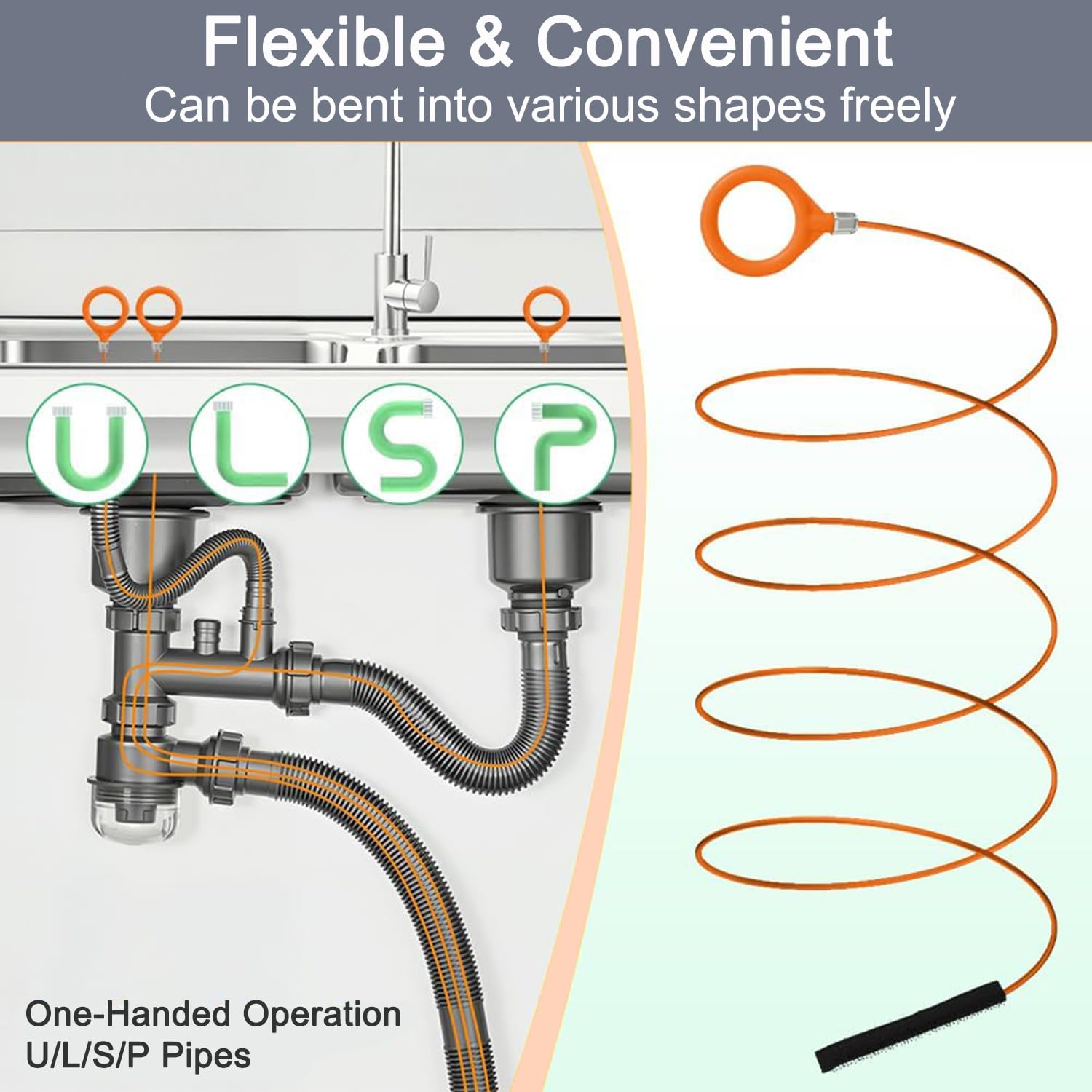 - Flexible and Bendable: The drain snake is made from highly flexible steel cable coated with a durable PVC layer, ensuring long-lasting performance without breaking. The metal clog remover can be bent into any shape to fit the sewer line and pull out blockages without damaging the pipes.