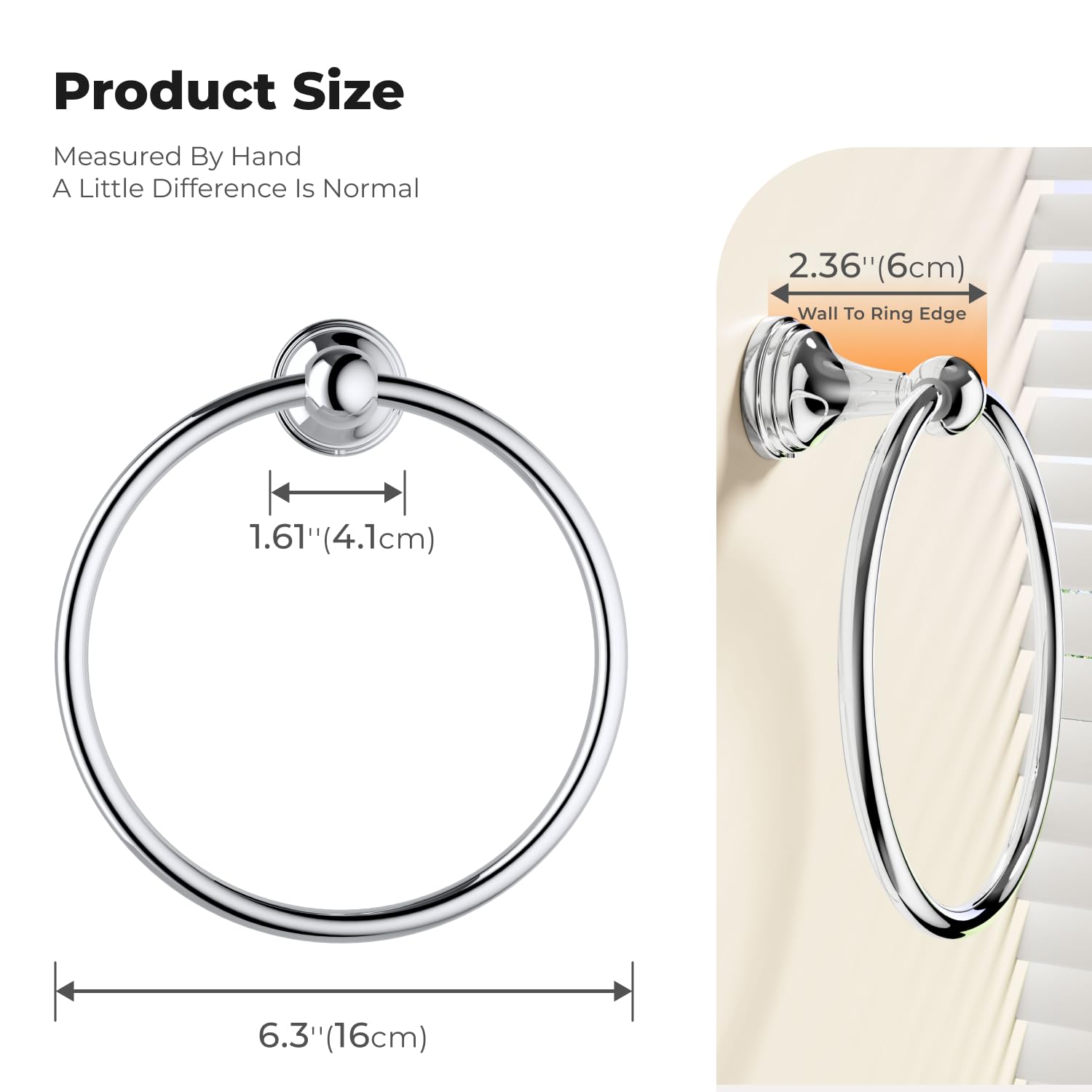 Hand Towel Ring for Bathroom – Chrome Round Towel Holder, Wall Mounted Rack, Sleek Hanger for Bath, Kitchen, RV, Decor