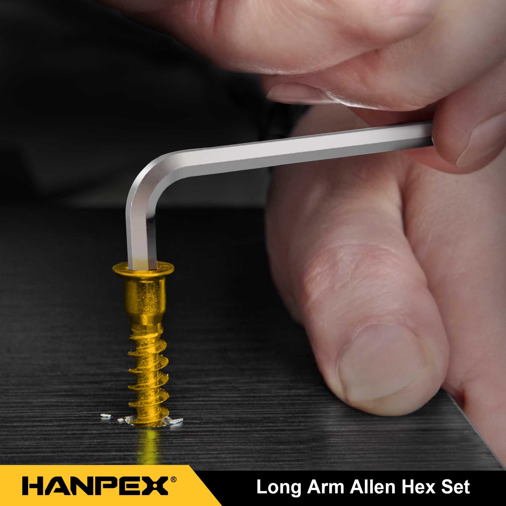 Hanpex Long Arm Hex Key Allen Wrench Set with Ball End, Ball-End Hex Allen Key, Allen Wrench Set Chrome Vanadium Steel(Cr-V), Tamperproof TORX L- Key Set (9Pc Imperial)