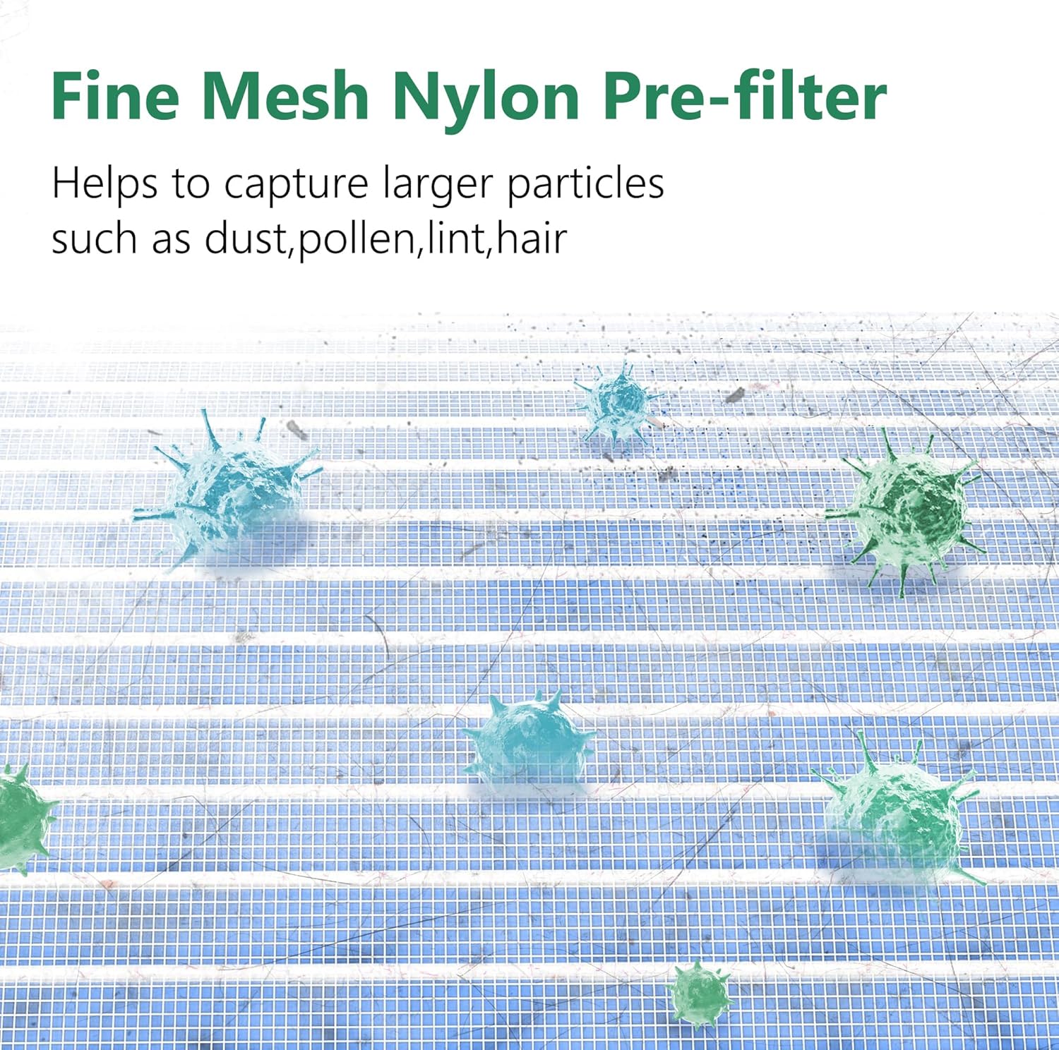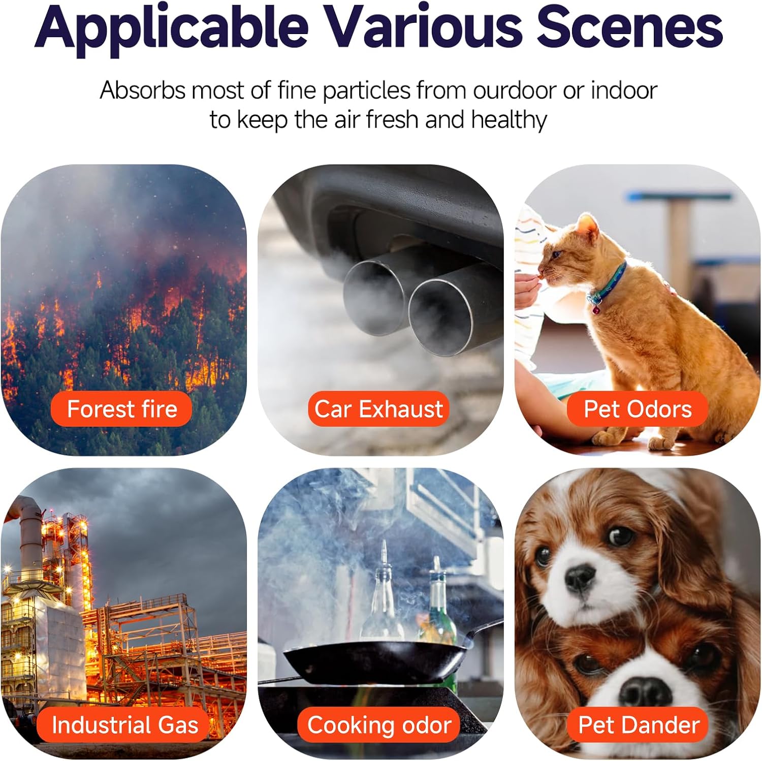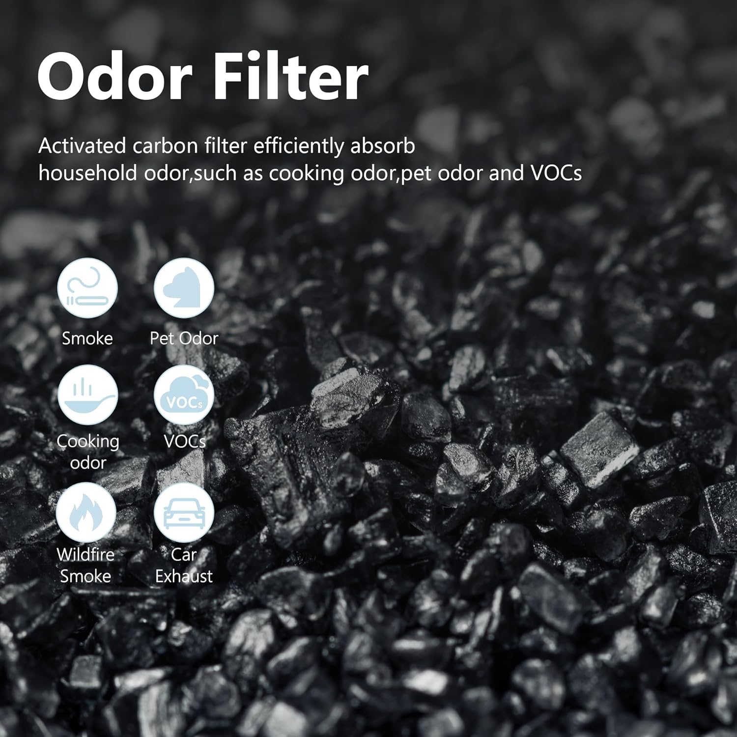 - 3-Stage Filtration System: Includes a pre-filter, premium filter, and activated carbon filter to capture dus-t, poll-en, pet dander, smoke, and odors for cleaner air.