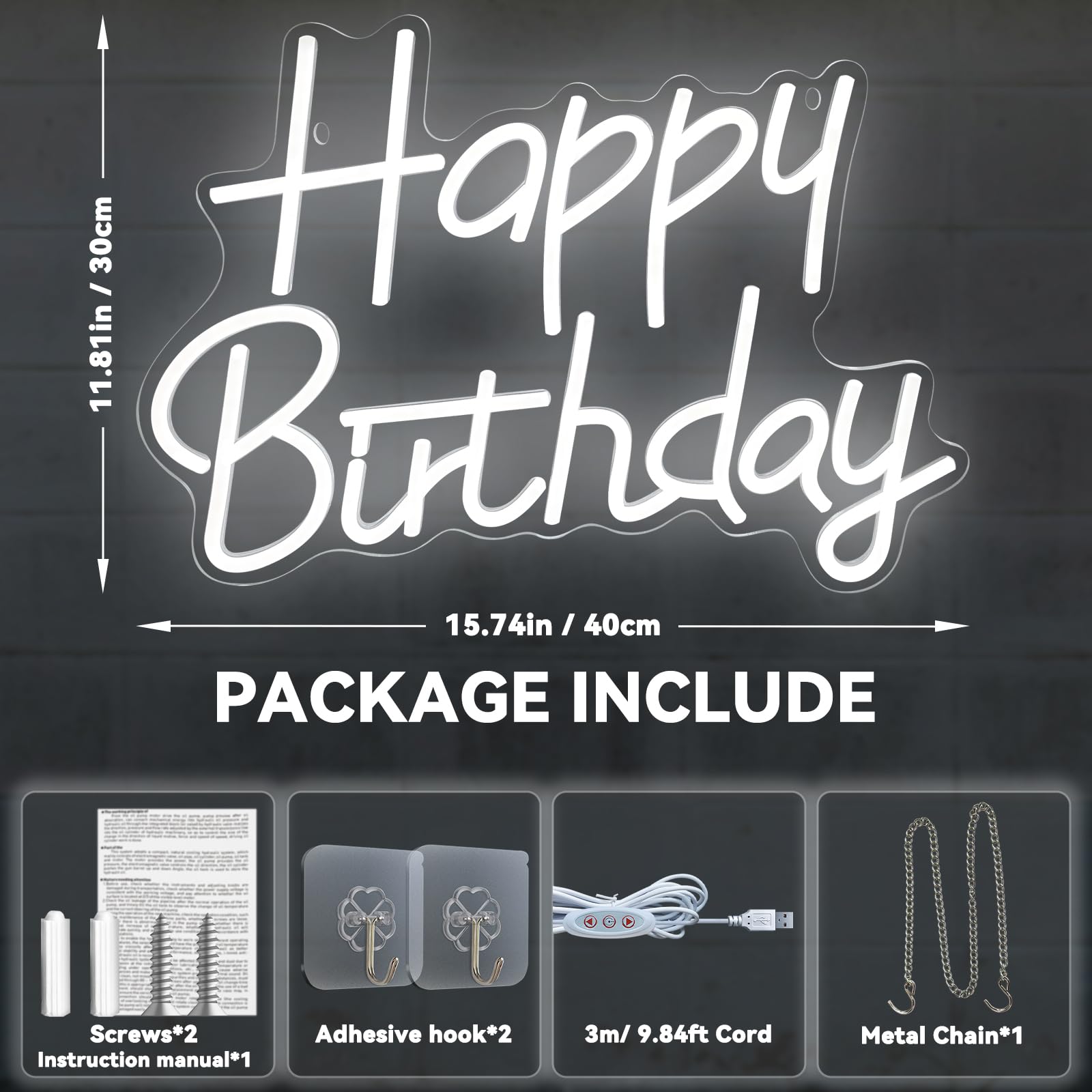 Happy Birthday Neon Signs for Party Decor Dimmable LED Birthday Neon Light for Wall Decor Light Up Happy Birthday Led Signs for Backdrop Birthday Any Ages Bday Celebration Decoration, White
