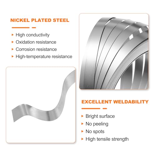 - Material - Nickel strip is made of 99.6% pure nickel, pure nickel will never corrode and come loose in high drain applications and it can maintain stable performance after long-term use in various battery welding environments. Nickel strip has a bright surface, no peeling, no spots, high tensile strength, good weldability, easy to operate, making your work easier.