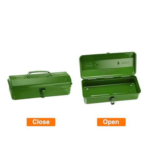 HARFINGTON Tool Box 14.2" Portable Steel Tool Box Hip Roof Style with Metal Latch Closure Tool Chest for Household Workshop Car, Green
