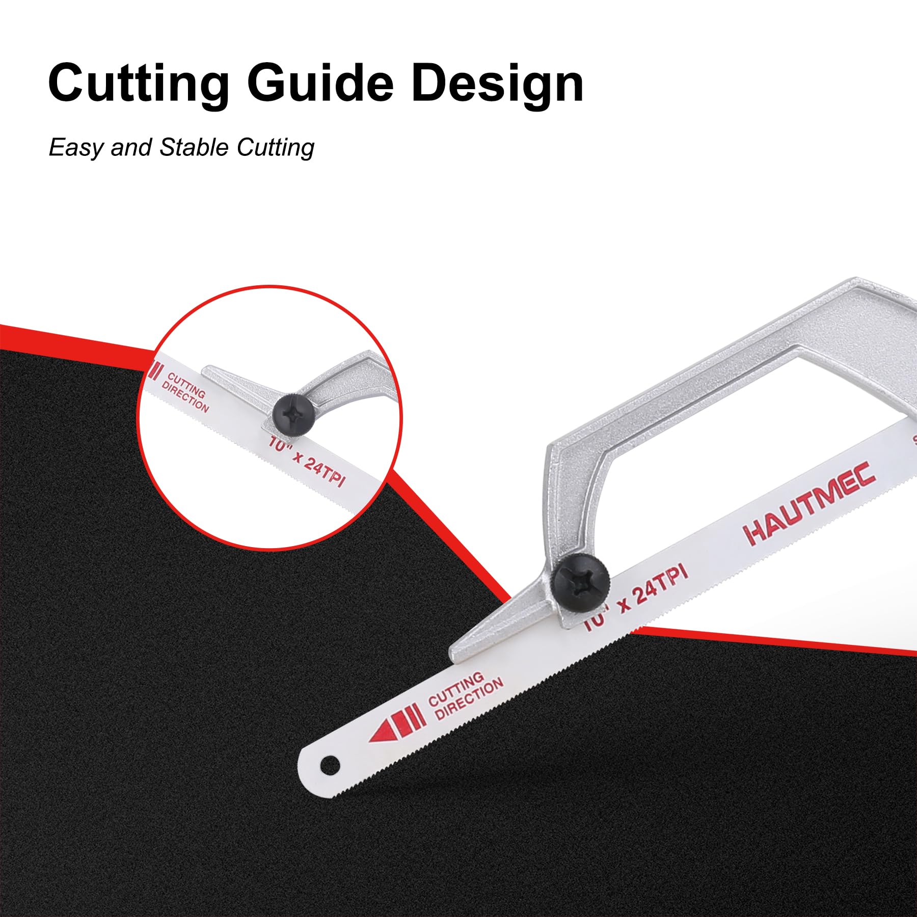 - 【Fits 10" & 12" Blades】Compatible with standard 10" and 12" hacksaw blades, includes 1pc 10” 24TPI bi-metal HSS blade for multi-purpose cutting