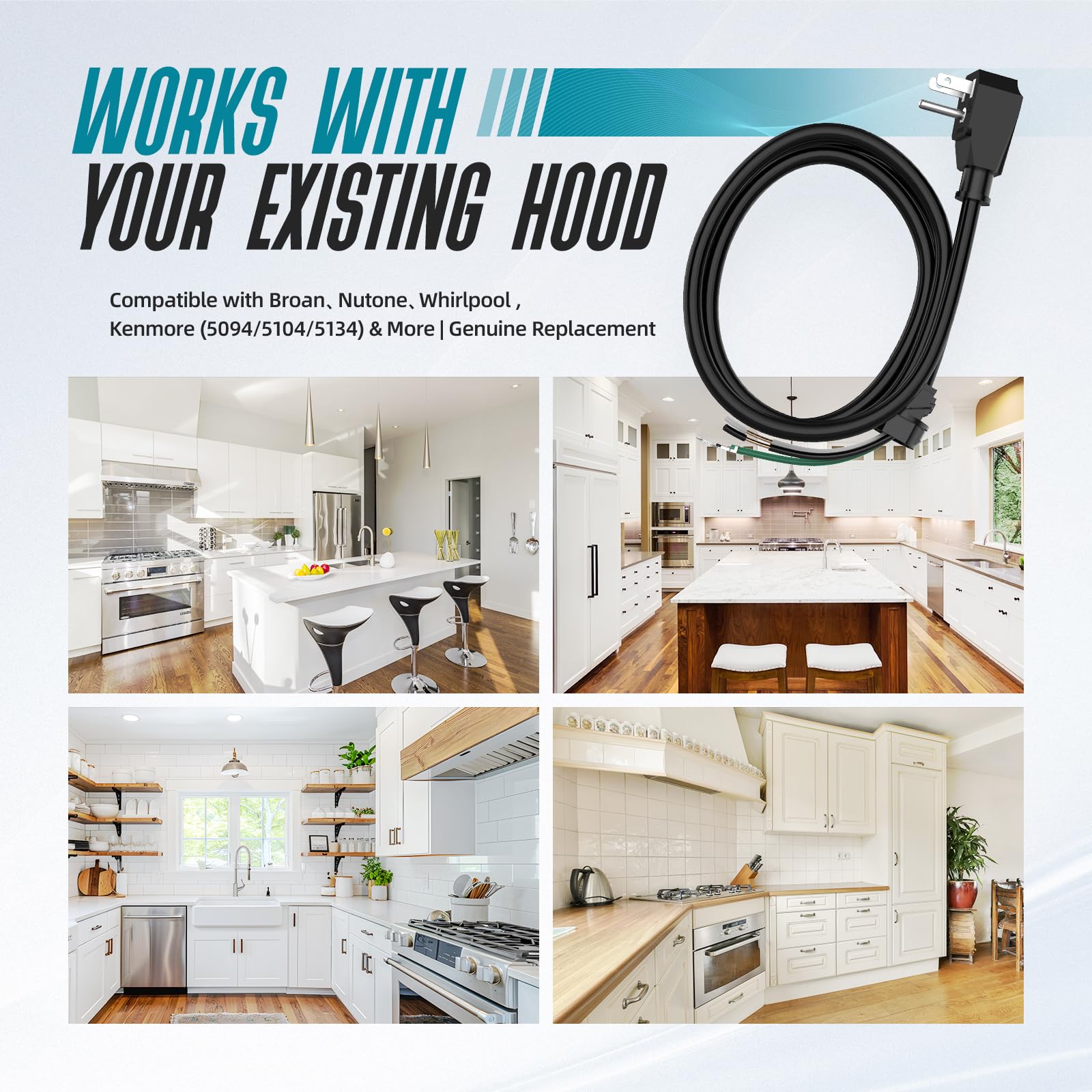 - Wide Compatibility: Universally designed for most range hood models, the HCK44 Range Hood Power Cord Kit is perfect for replacing old cords or transitioning from hardwired systems. Streamline upgrades or repairs effortlessly
