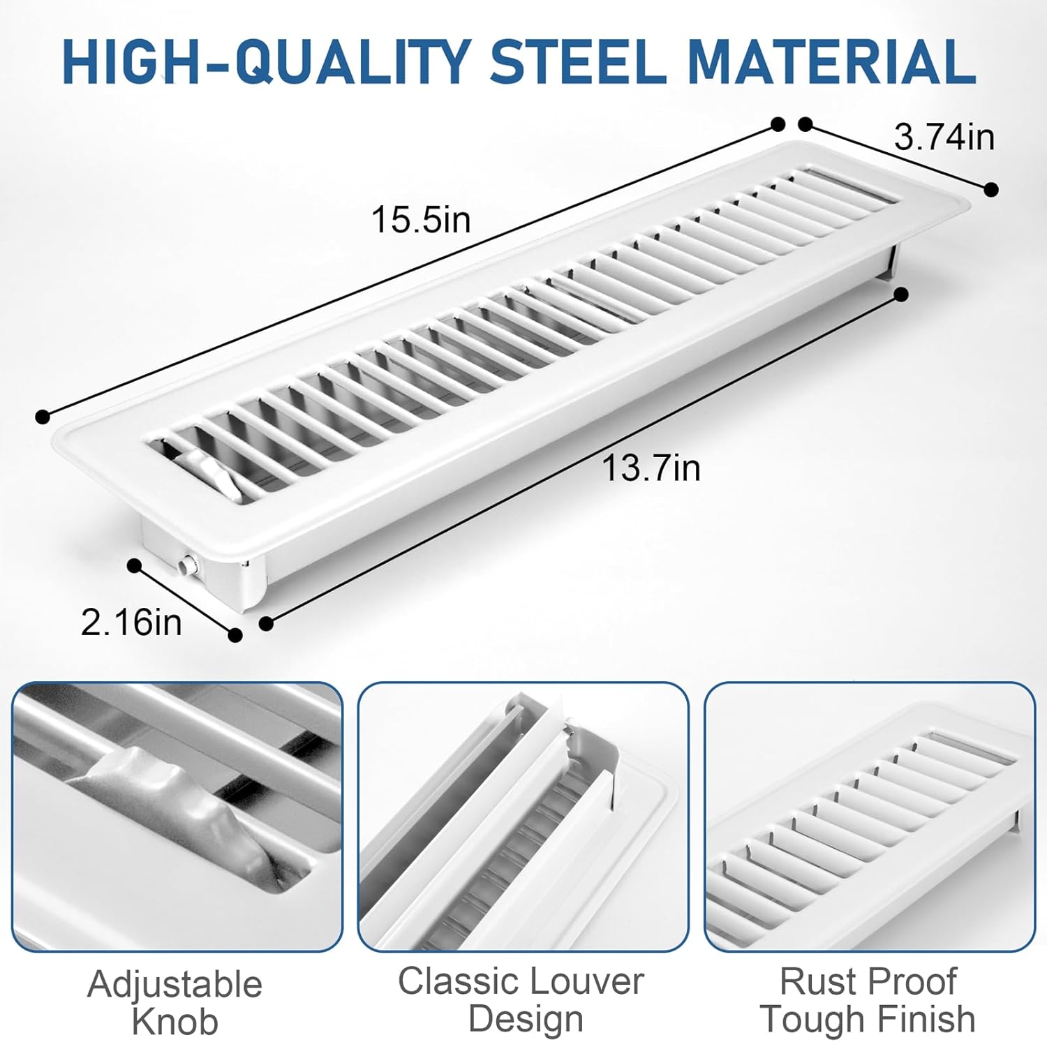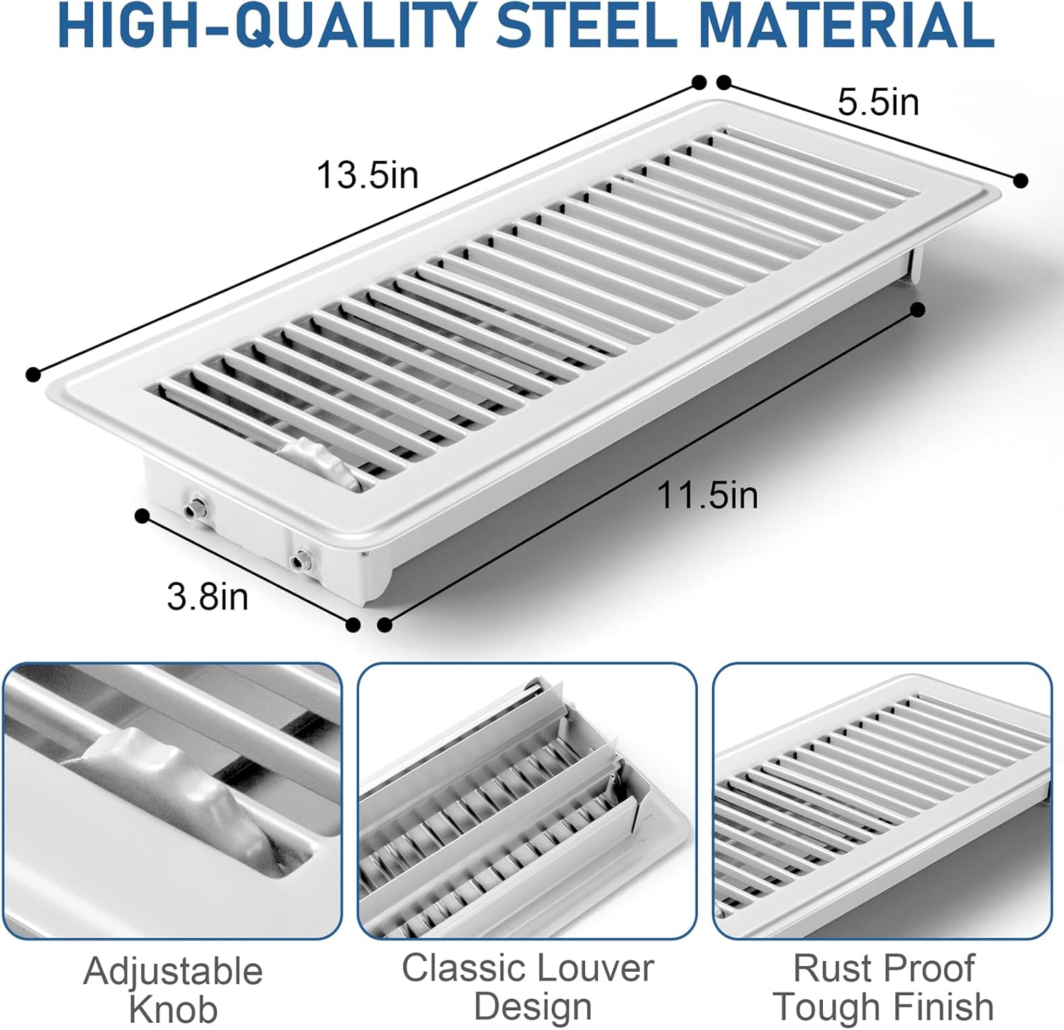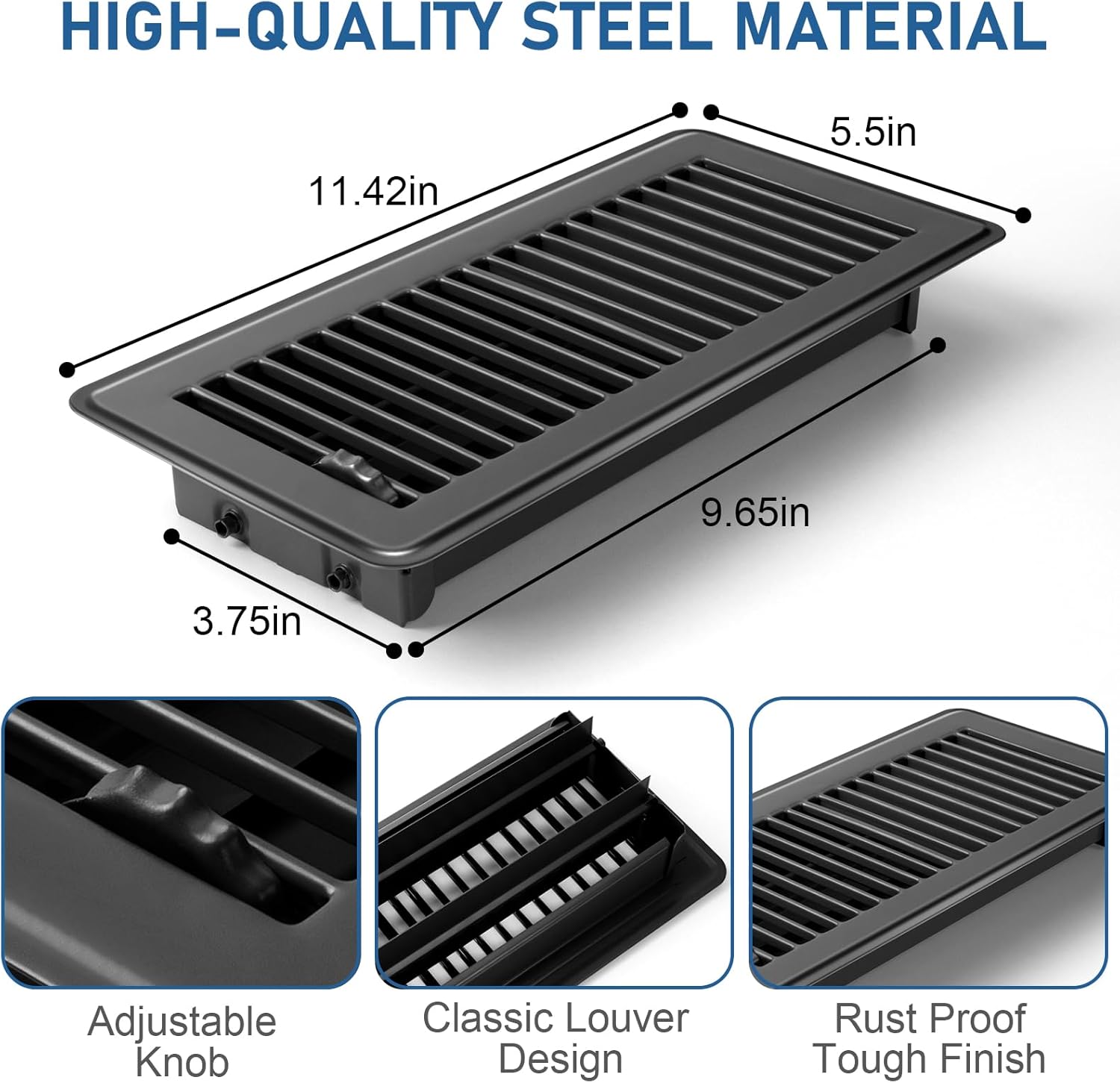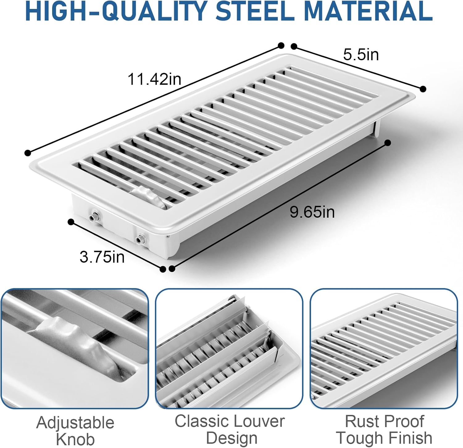 - 6-Pack Floor Vent Covers: This set includes 6 floor vent covers, each measuring 4 x 10 inches, perfect for household use. The simple design of these floor registers enhances the aesthetics of your space, blending seamlessly with most room decors.