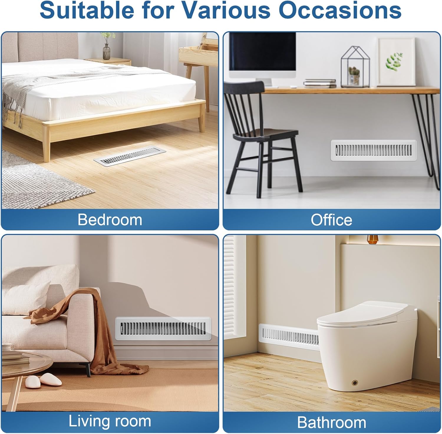 - Versatile Use: These 4 x 10 inch vent covers are suitable for use in homes, as well as in restaurants, hotels, and office spaces. With their minimalist design, they can be used for floor or wall vents.