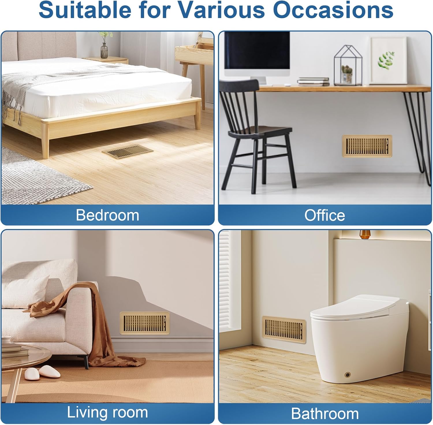 - Easy Installation: Installing these floor registers is effortless—just place them over the floor duct opening. They’re also easy to clean, requiring only a damp cloth to maintain their appearance.