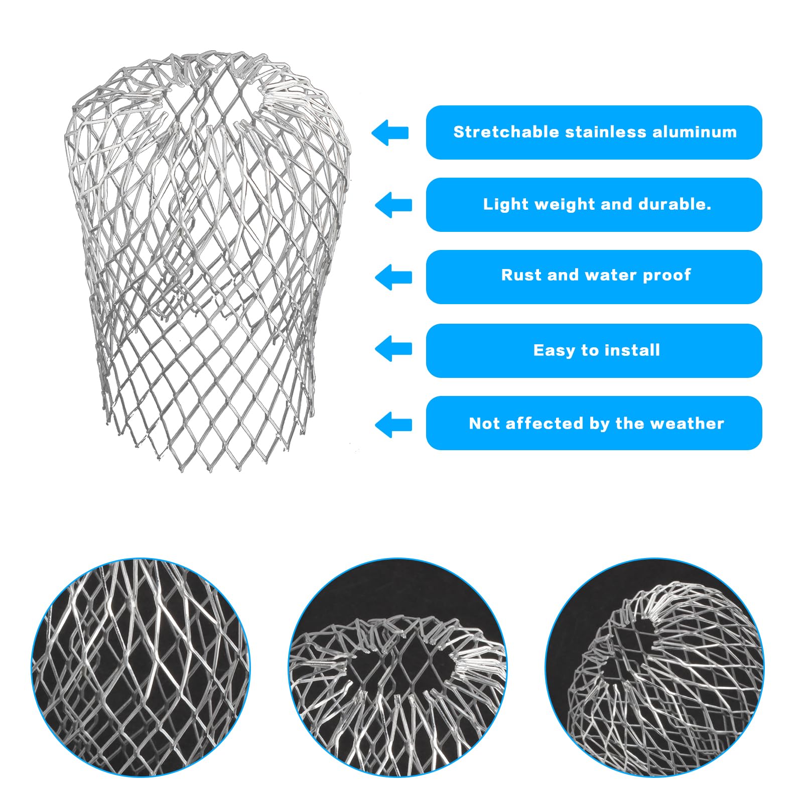 - Aluminum Gutter Guards: Downspout filter is made of high-quality aluminum material, exquisite workmanship, smooth edges and surfaces without burrs, corrosion-resistant, rust-proof, strong weather resistance, long-lasting durability, and stability.