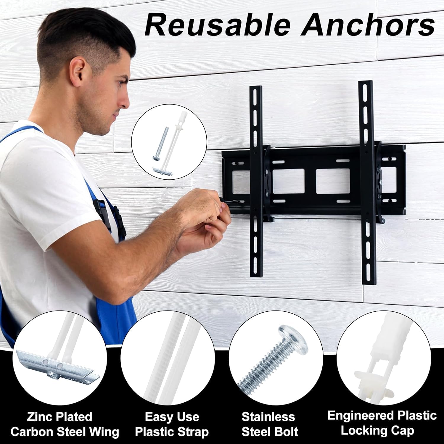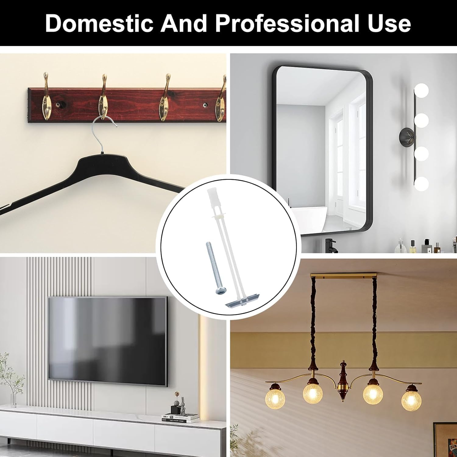 - Professional and Versatile Applications: Ideal for mounting TVs and other fixtures, these drywall anchors fit perfectly behind hollow materials ranging from 3/8” to 3-5/8” thick. They can be used on drywall, tiles, concrete blocks, and gypsum boards, ensuring you save time and enhance efficiency in your projects.