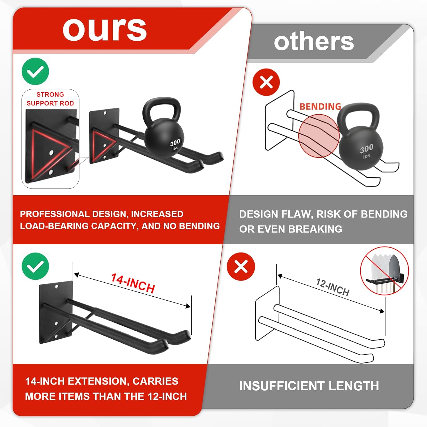 - [𝟏𝟒-𝐈𝐍𝐂𝐇 𝐆𝐀𝐑𝐀𝐆𝐄 𝐇𝐎𝐎𝐊𝐒 𝐖𝐈𝐓𝐇 𝐒𝐔𝐏𝐏𝐎𝐑𝐓 RODS]: The extra-long garage wall hooks can hold more and larger objects. garage hooks heavy duty have added support rods for stronger load-bearing capacity