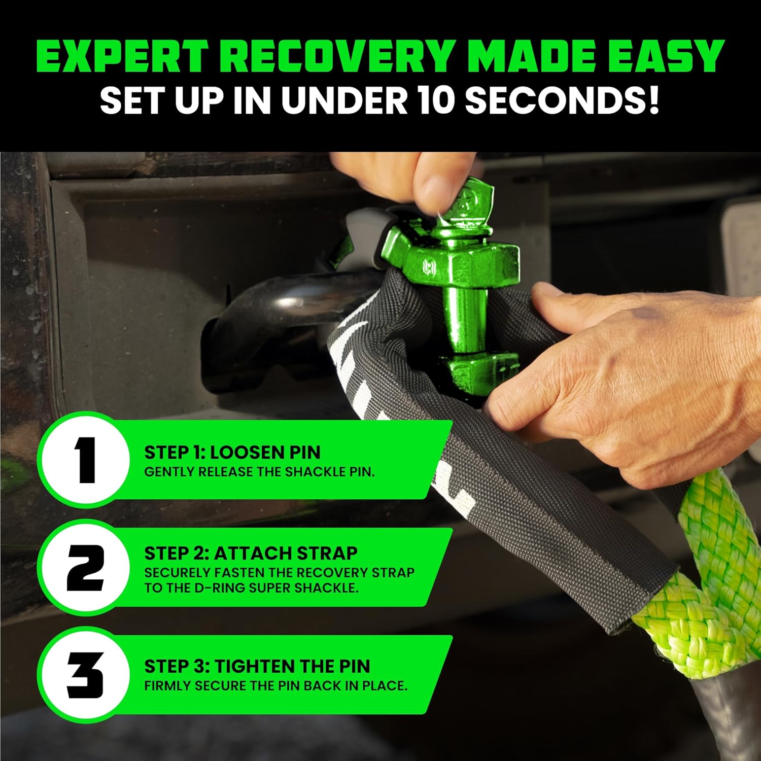 - SUPER D RING SHACKLES - Engineered for Ultimate Strength With a 70,548 lb Break Strength, Providing Exceptional Durability and Reliability for Heavy-Duty Recovery and Towing Tasks.