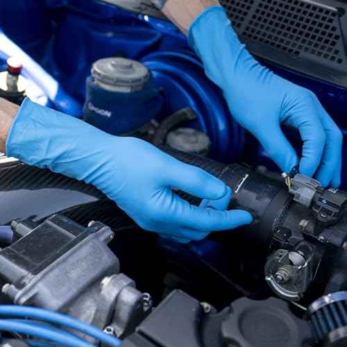Heavy Duty Thick Latex Gloves, 14mil, Blue, Industrial, Powder Free, 12" Length, Textured, Multi-Purpose, Box of 50