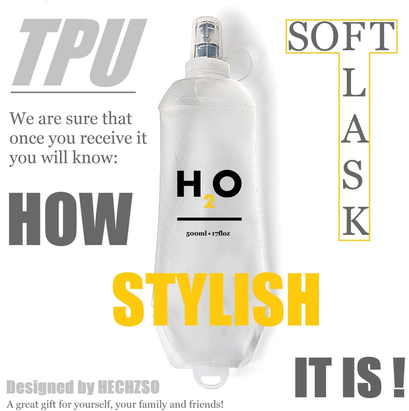 - Food-Grade TPU for Safe Hydration: HECHZSO collapsible soft flask is made of BPA-free TPU, safe for 0-60°C beverages. Lightweight (2.08oz) and easy to clean, ideal for daily use and outdoor sports.semi-transparent frosted water bottle.