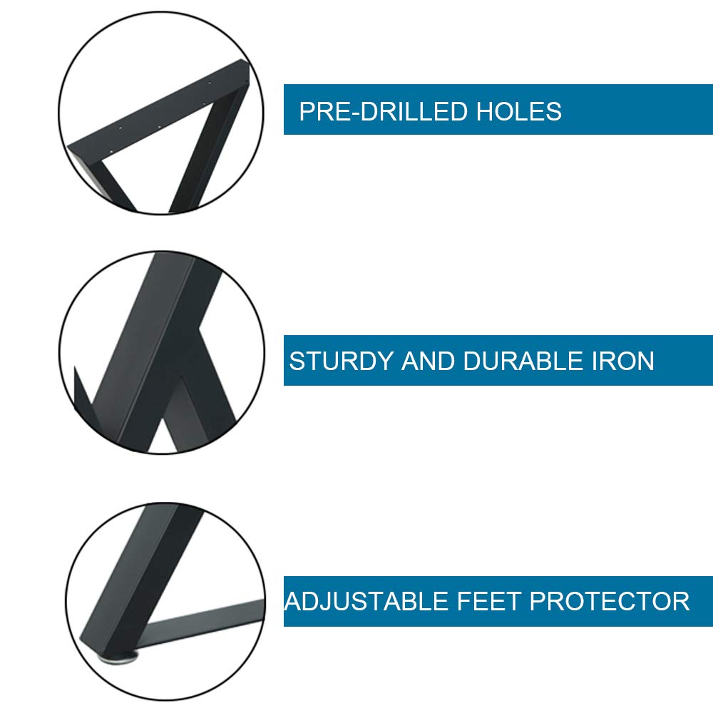 HEONITURE Desk Legs 28" Triangle Shape Table Legs Iron Bench Legs Dining Table Legs Industrial Dining Table, Rustic Decor Table Legs(28” Height 18” Wide, Set of 2)(B)