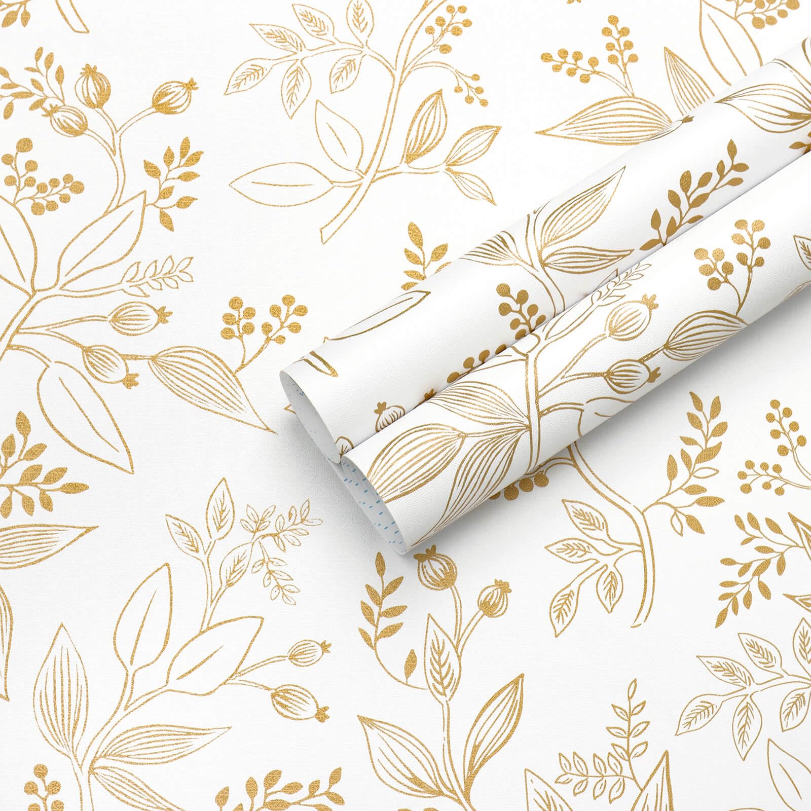 Heroad Floral Wallpaper Peel and Stick White and Gold Contact Paper Modern Removable Contact Paper for Cabinets and Drawers Bathroom Vinyl Roll Self Adhesive 78.7" x 17.3"