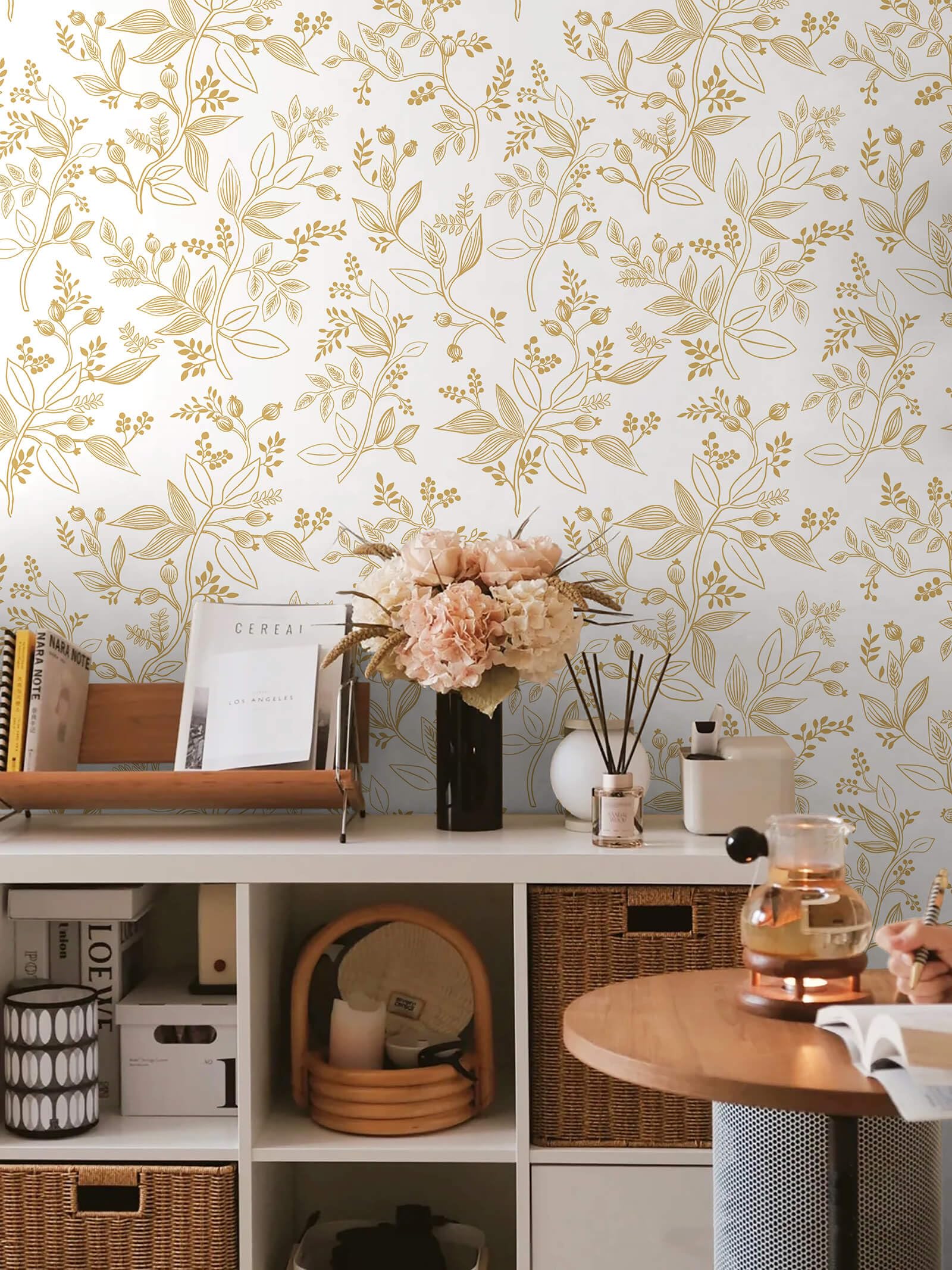 - DESIGN--Modern style exquisite gold floral wallpaper. Upgrade the style. The presentation of pattern arrangement is smoother. Suitable for large-scale wall pasting, highlighting exquisite and elegant geological sense.
