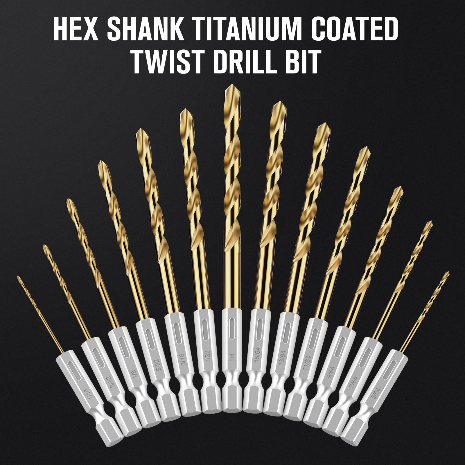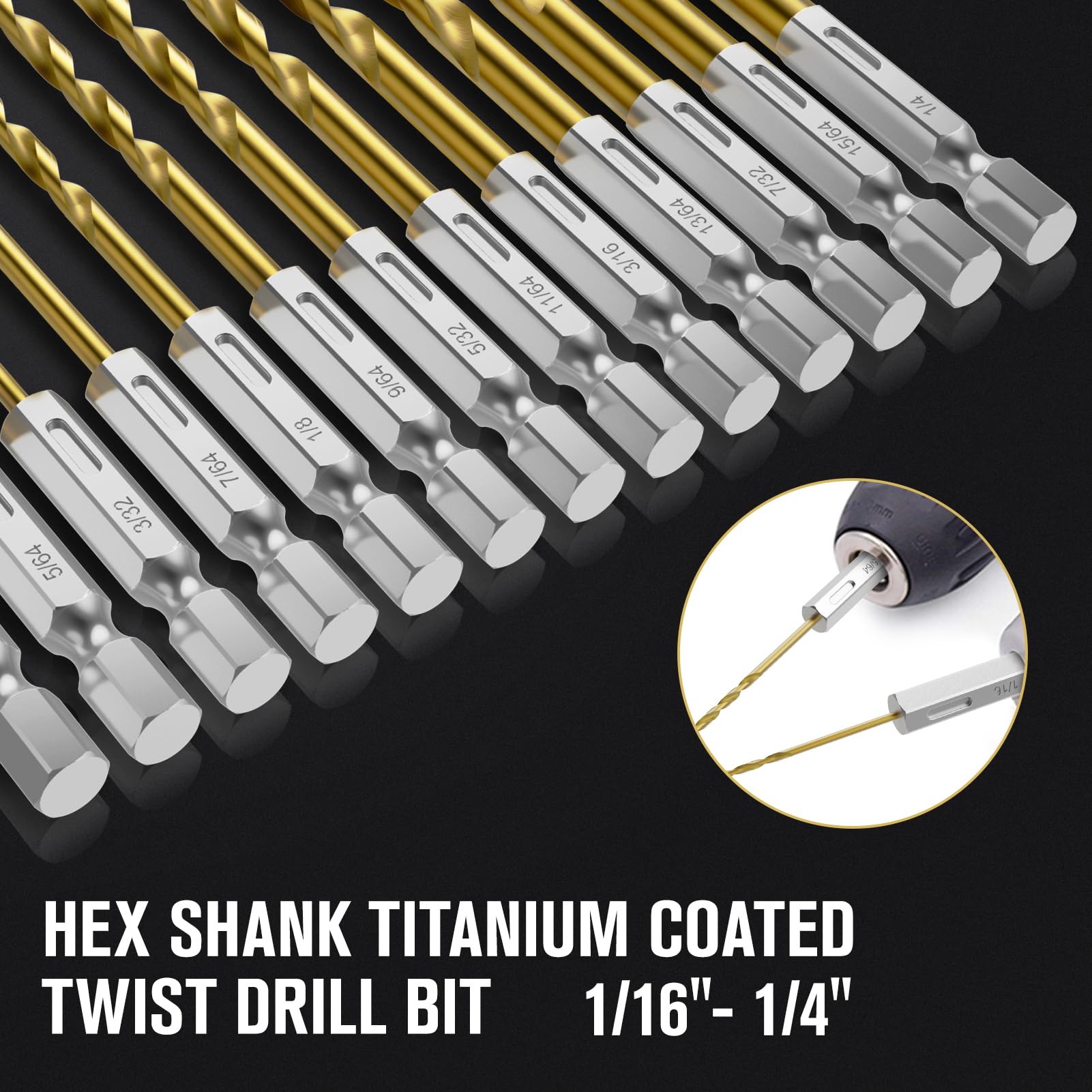 Hex Shank Drill Bit Set, 19Pcs Titanium Twist Drill Bit for Sheet Metal, Wood, Plastic, Quick Change Design (1/16" - 1/4")