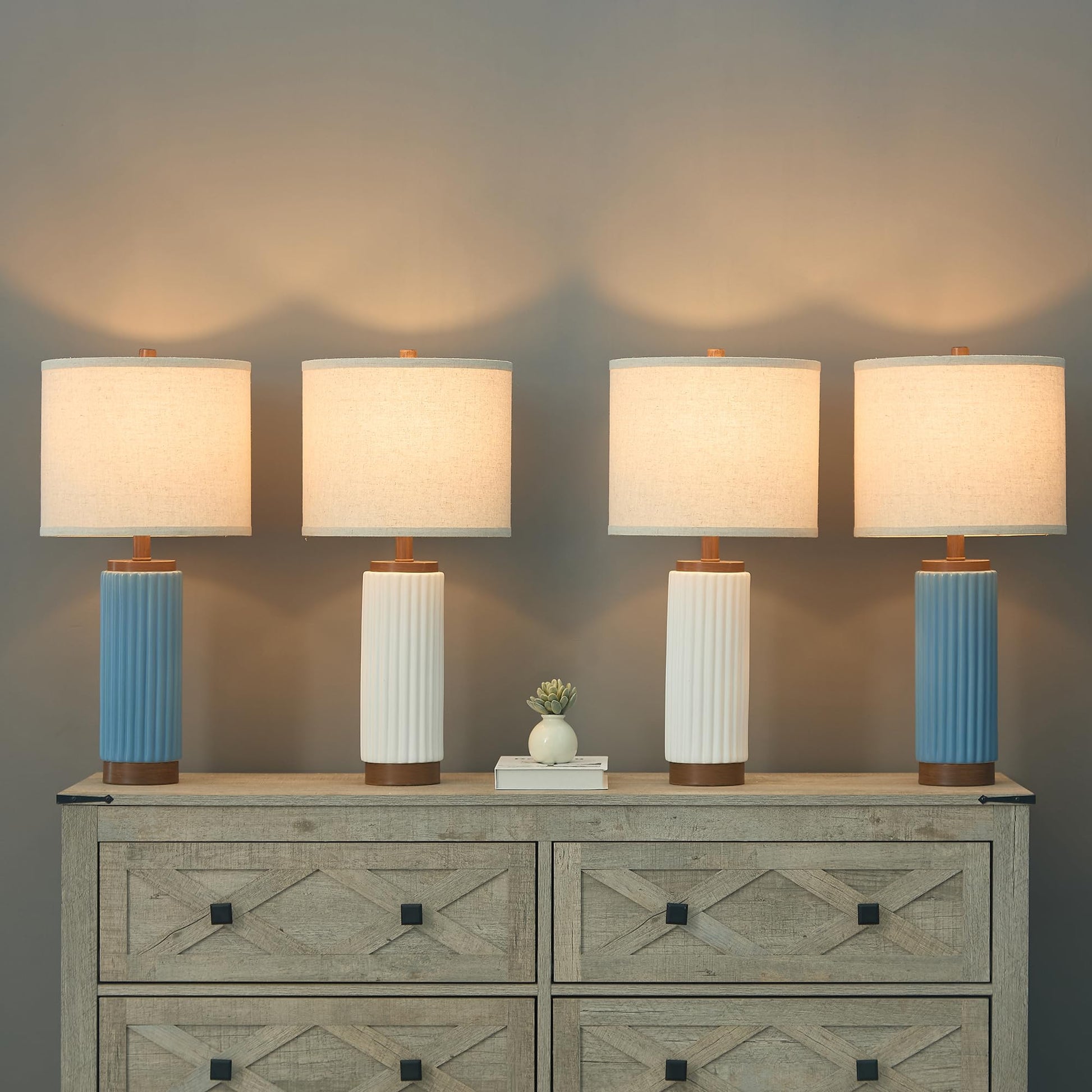 - APPEARANCE & FEATURES: This large ceramic table lamp base is all wood grain metal with ceramic trim available in two colourways, ceramic white and sky blue. Due to the large items are easily damaged during transport fragile parts, this product is built-in no bulb, 3-Way dimmable function need to purchase their own applicable light bulb. The copper wires, plugs and other accessories used in this lamp are RoHS compliant.