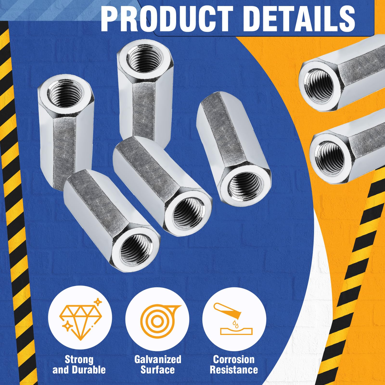 - Quality Material: the coupling nuts are crafted from a zinc plate material that is highly reputed for its resilience and strength; This makes the coupling nuts reliable for heavy duty applications and ensures they are restless for long lasting use