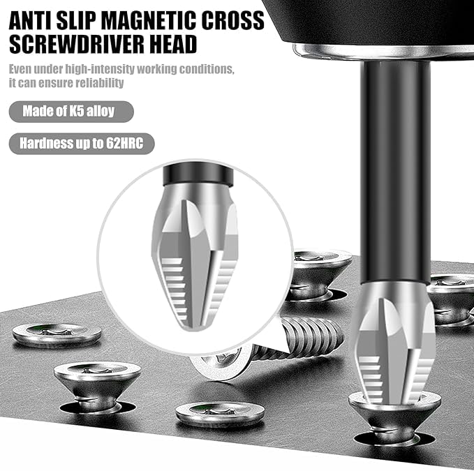 Details: High Magnetic Screwdriver Drill Bit Set, K5 Impact Resistant Non Slip Bit, Anti-Slip Magnetic Electric Screwdriver Set, 25 50 65 70 90 150mm (12Pcs) Our high-magnetic screwdriver drill bit set is engineered to handle high-speed torque applications, distributing pressure evenly and enhancing durability. This ensures strong magnetic durability