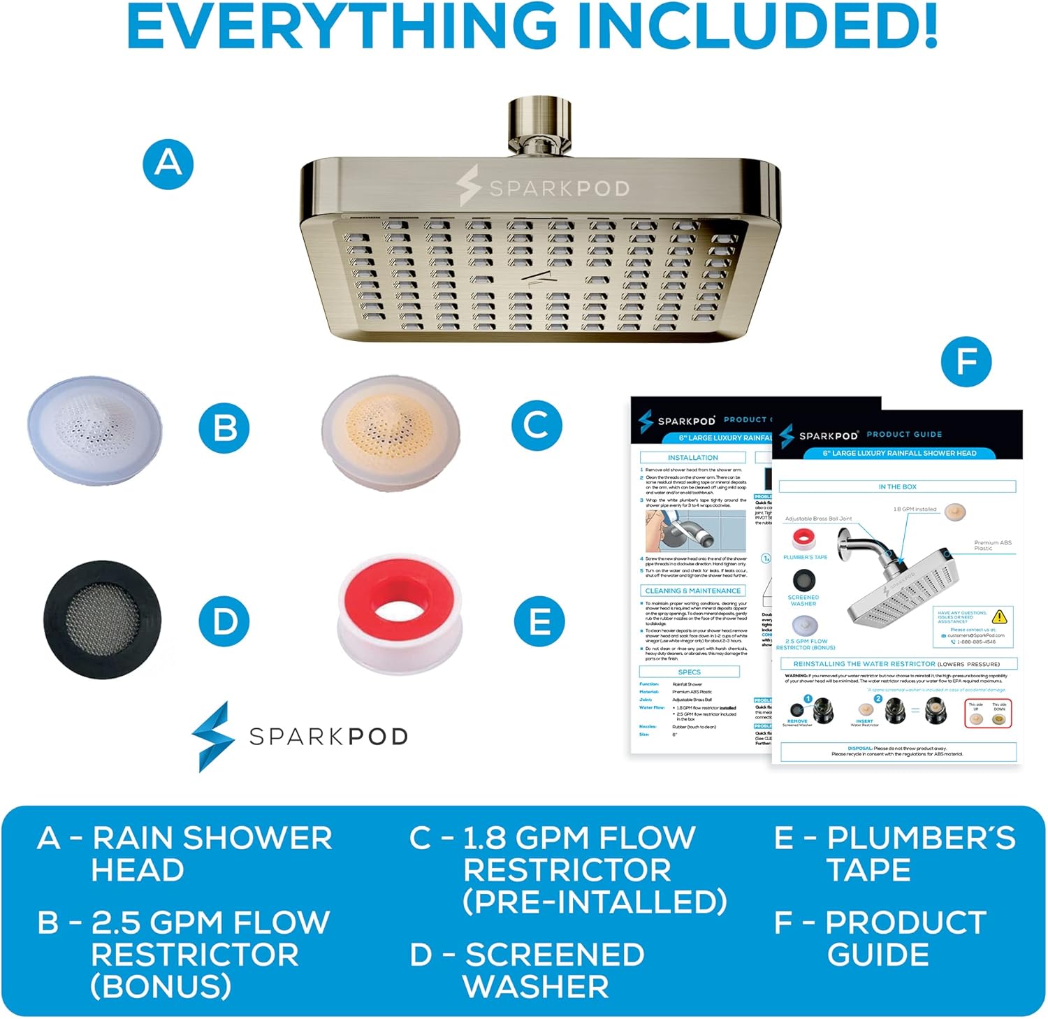 - ENERGY SAVINGS: Each SparkPod Rain Shower Head has a maximum outflow of 1.8 gallons per minute (GPM) so you can save on your water heater bill or enjoy longer hot showers