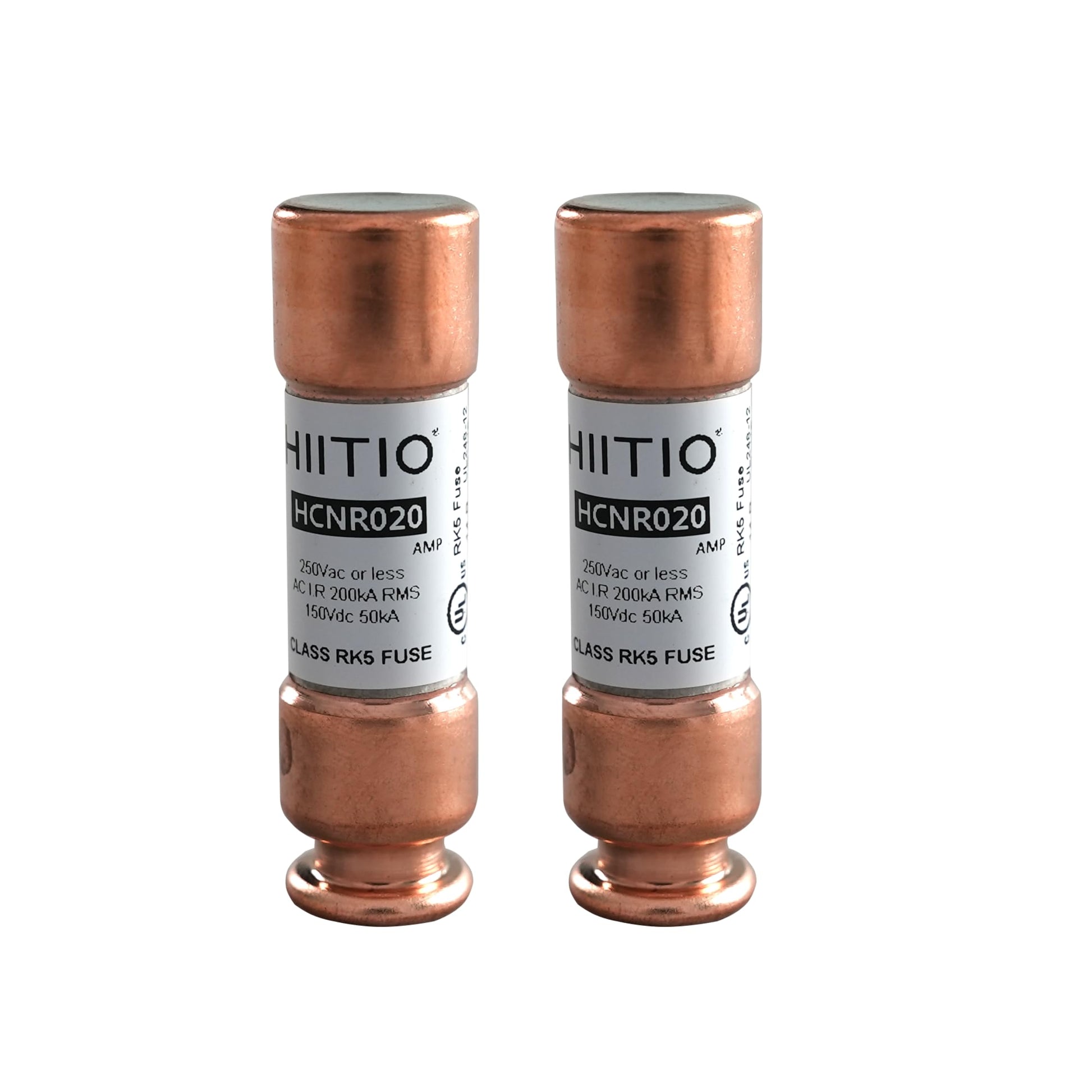 HIITIO 250Vac/150Vdc 20A Time Delay Fuse, RK5 Cartridge Fuse, Class R, Fusetron Dual Element Time-Delay Current Limiting Class UL Listed (Pack of 2)