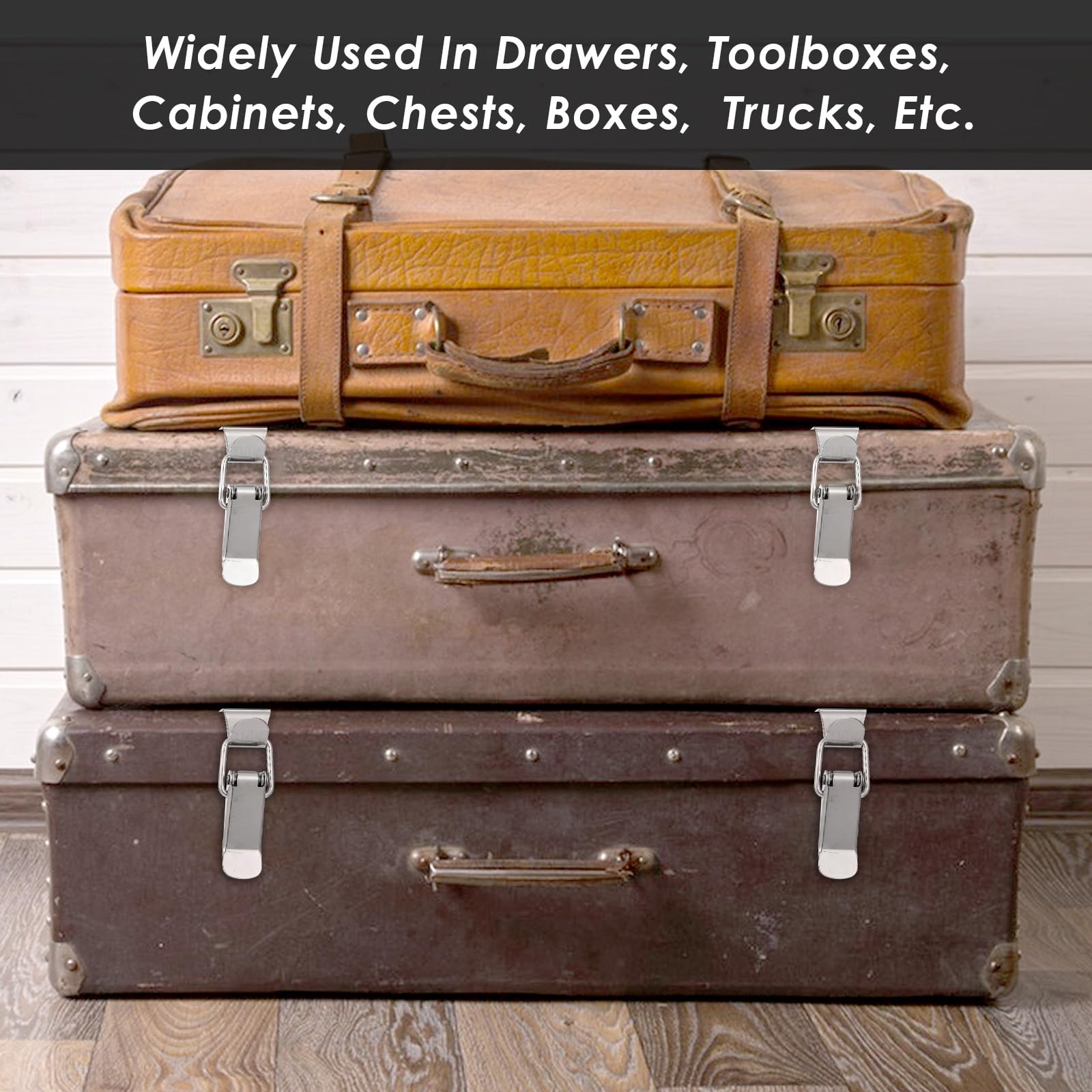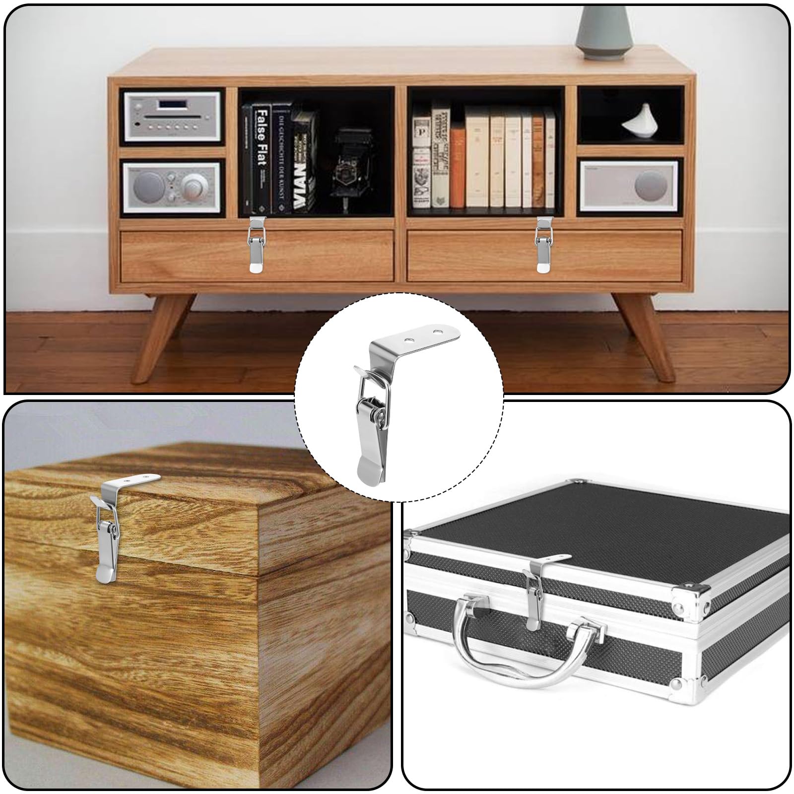 - 【Broad Usage】These stainless steel toggle latches are super practical for boxes, cases, toolboxes, drawers, chests, trunks, cabinets, closets, and lockers, and great to use at home, office, shop, and so on. It is a good helper for building heavy wooden boxes, packing, importing, exporting packaging, or shops.