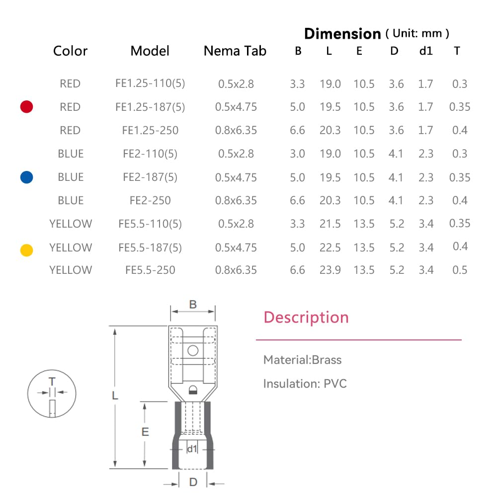 - [PACKAGE INCLUDES – 150PCS] 150Pcs blue female vinyl-insulated spade connectors for 16-14 AWG (1.5-2.0 mm²) wires, fitting standard 4.8 mm (3/16") tab terminals. Perfect for automotive, marine, home, and industrial wiring projects.