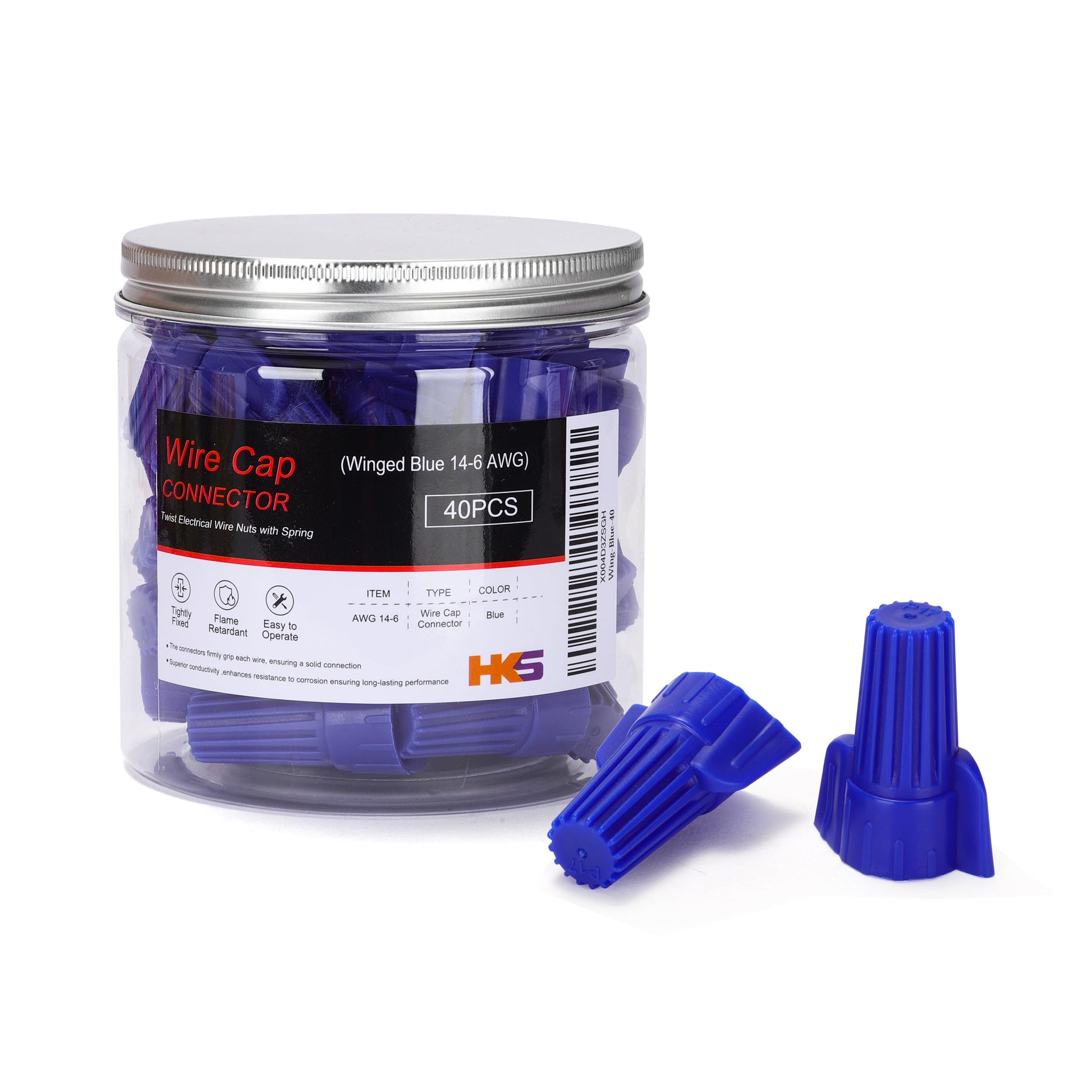 HKS 40 PCS Blue Wire Nuts - AWG 14-6 Winged Electrical Wire End Connectors - Twist-On Screw Caps Insulated Insertion with Spring Portable & Quick to Connect