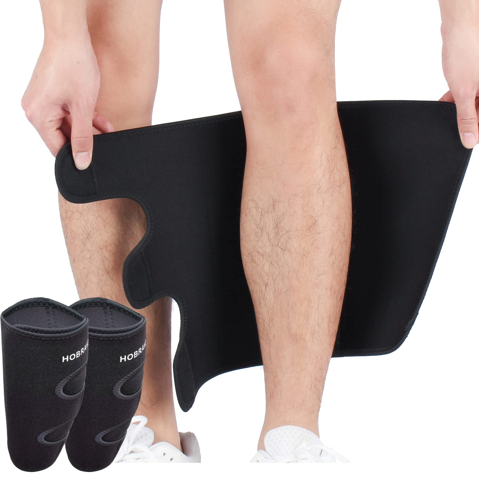 Hobrave Calf Brace Shin 2 Pack Splint Compression Wrap Sleeve for Torn Calf Muscle Pain Relief Strain Sprain Injury Adjustable Leg Support Men and Women